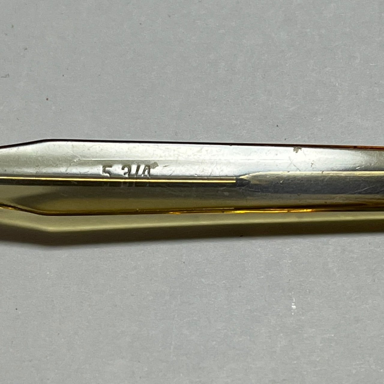 各部年代なりの小傷やヤレ、左右のテンプルエンドのアールの違い等見えますが、艶、透明感の残るコンディションです。
