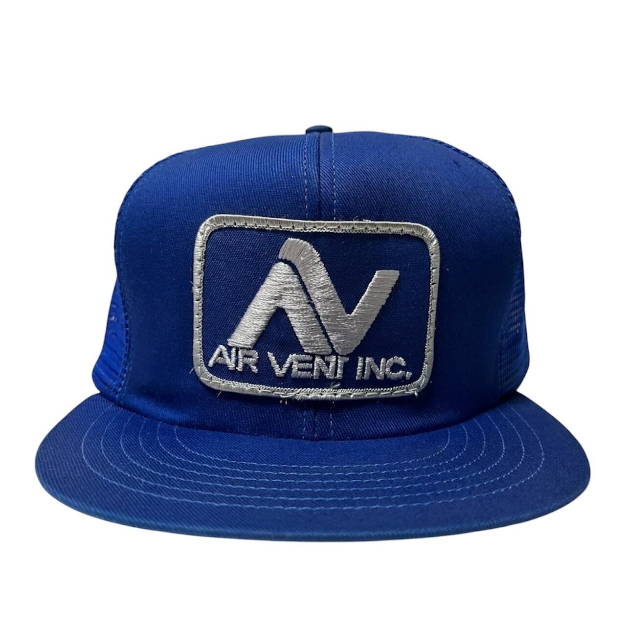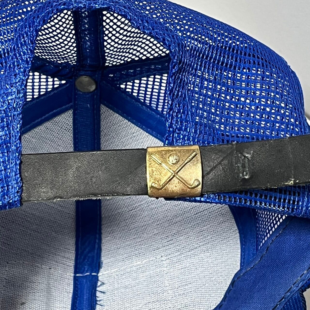 80’s アメリカ製 トラッカーキャップ ブルー レザーストラップ 帽子 古着