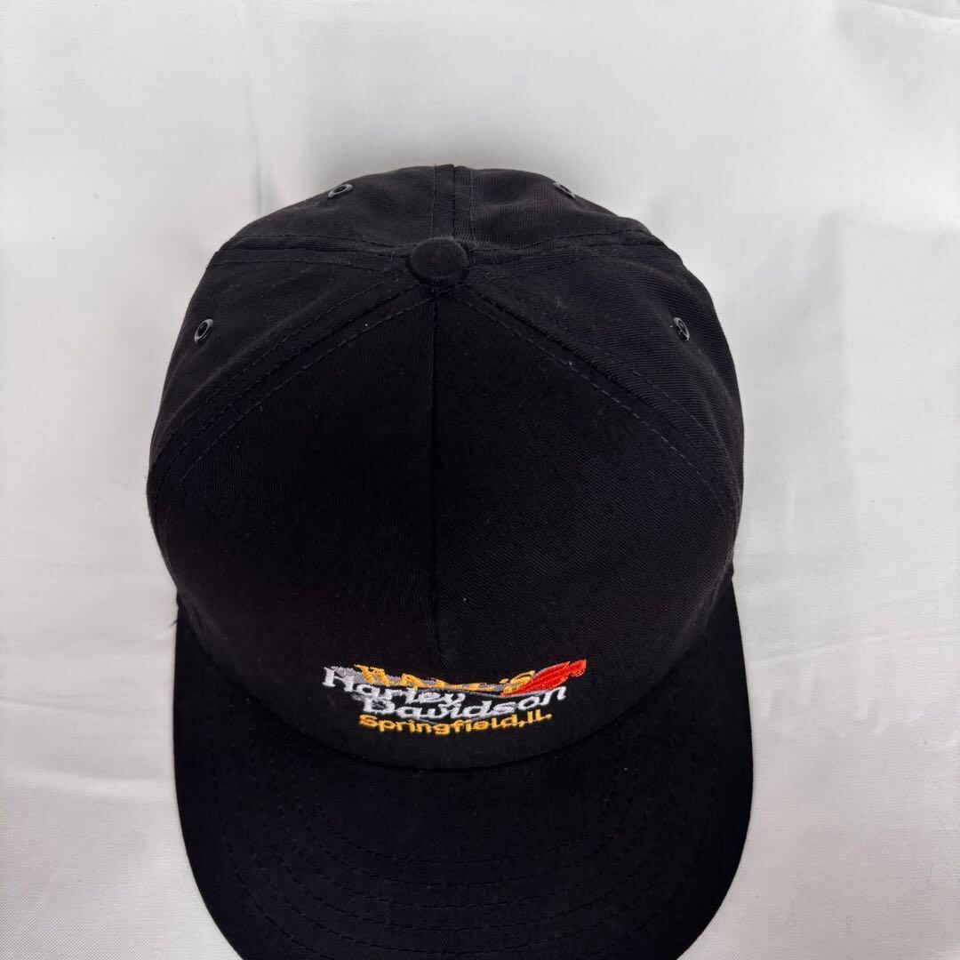 イリノイ州のハーレーディーラー販促品と見えるこちらは、ディーラー独自のデザインが刺繍されたシンプルながらも存在感あふれる一点。