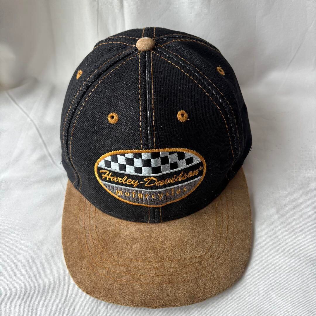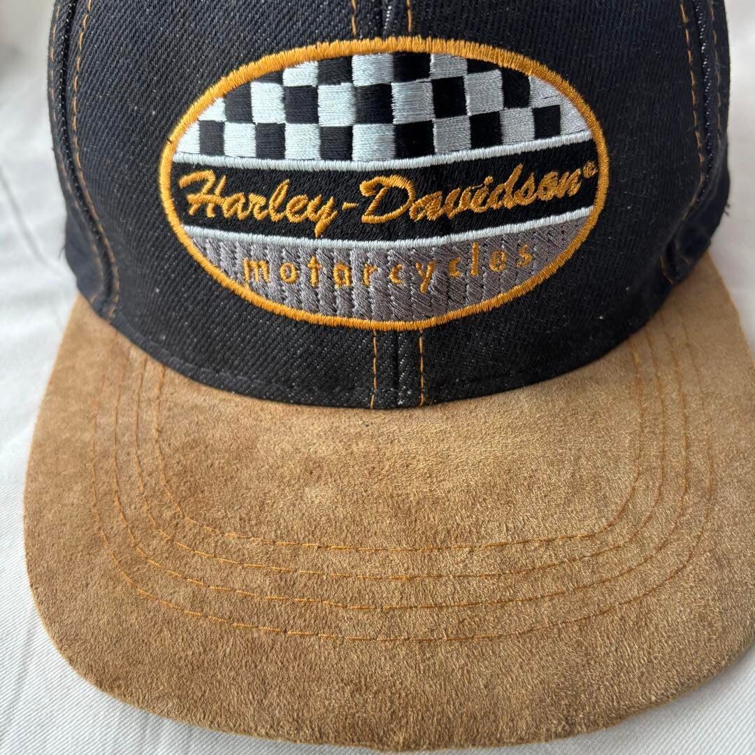 ビンテージ ハーレーダビッドソン キャップ 帽子 古着 チェッカー スウェード