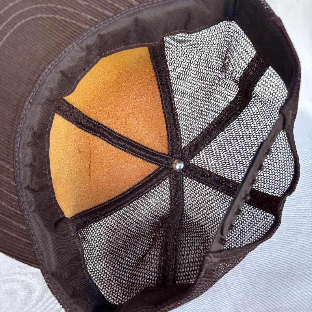 王道のカラーリングと言えるブラウンのコーデュロイがフロントパネルに用いられたメッシュキャップ仕様はまさに玄人向けの仕上がり。