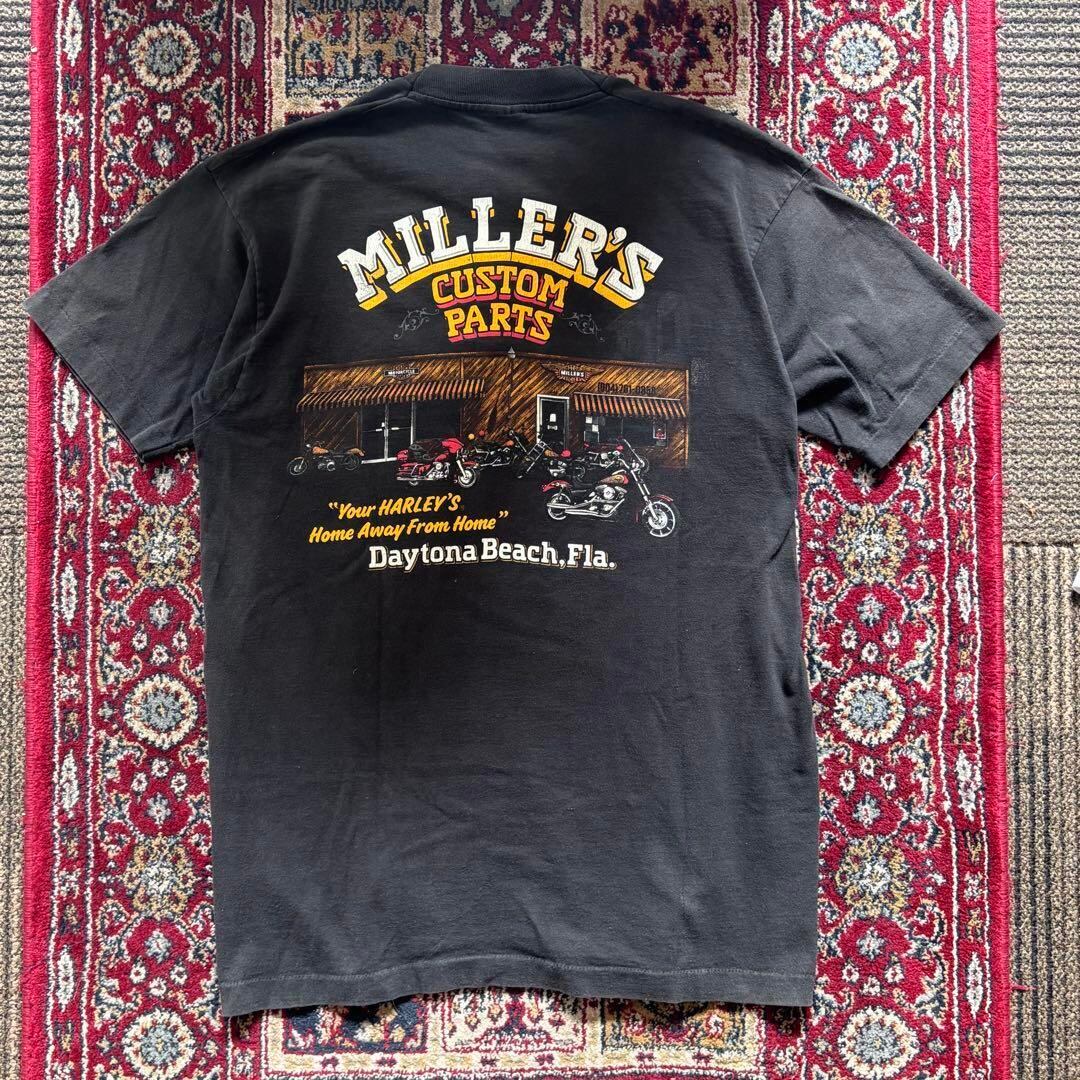 フロリダ州の著名なハーレーディーラーである”MILLER’S CUSTOM PARTS”が、全米最大規模のバイクイベントであるDAYTONA BIKE WEEK出店時に販売していた一枚と見えます。