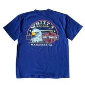 ヴァージニア州のディーラーグッズと見えるこちらは、創業当初の単気筒エンジンから当時の最新エンジンであるEVOまでのハーレー歴代のエンジンが描かれた、ハーレーの系譜を感じる一枚。