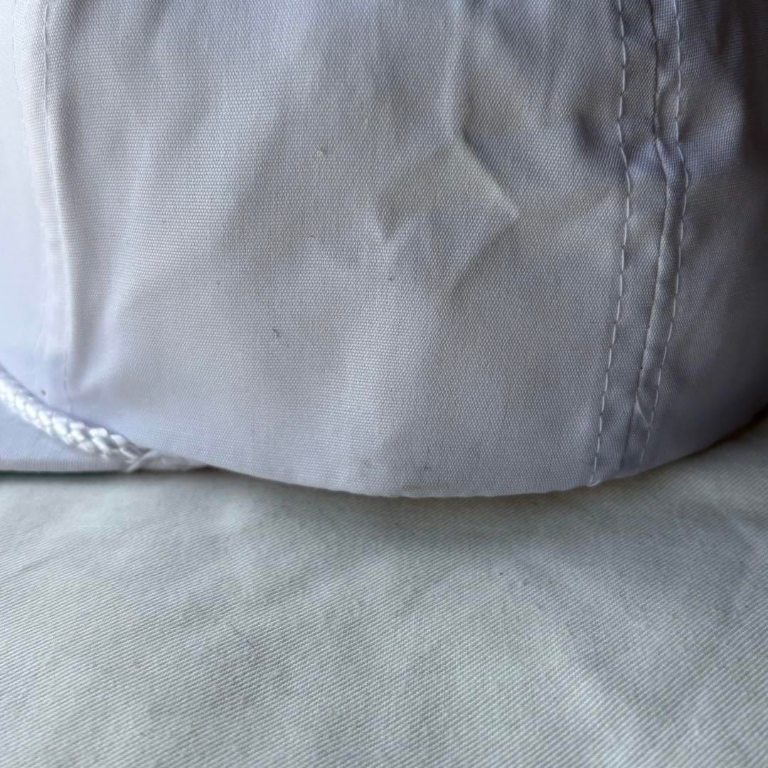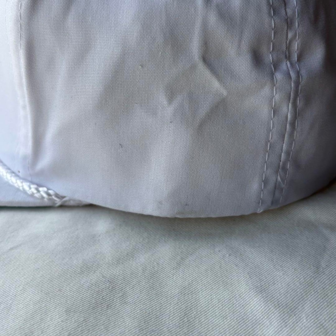 着用感とサイドパネルに僅かなシミが見えますが、白色のキャップとしては悪くないコンディションと感じます。