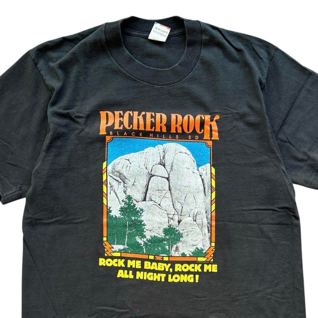 またプリント下部には”ROCK ME BABY~”のブルースの定番ナンバーのフレーズがプリントされており、ビンテージTシャツでは人気の高いジョーク系、そしてバイカーらしさも感じる遊び心溢れる仕上がり。