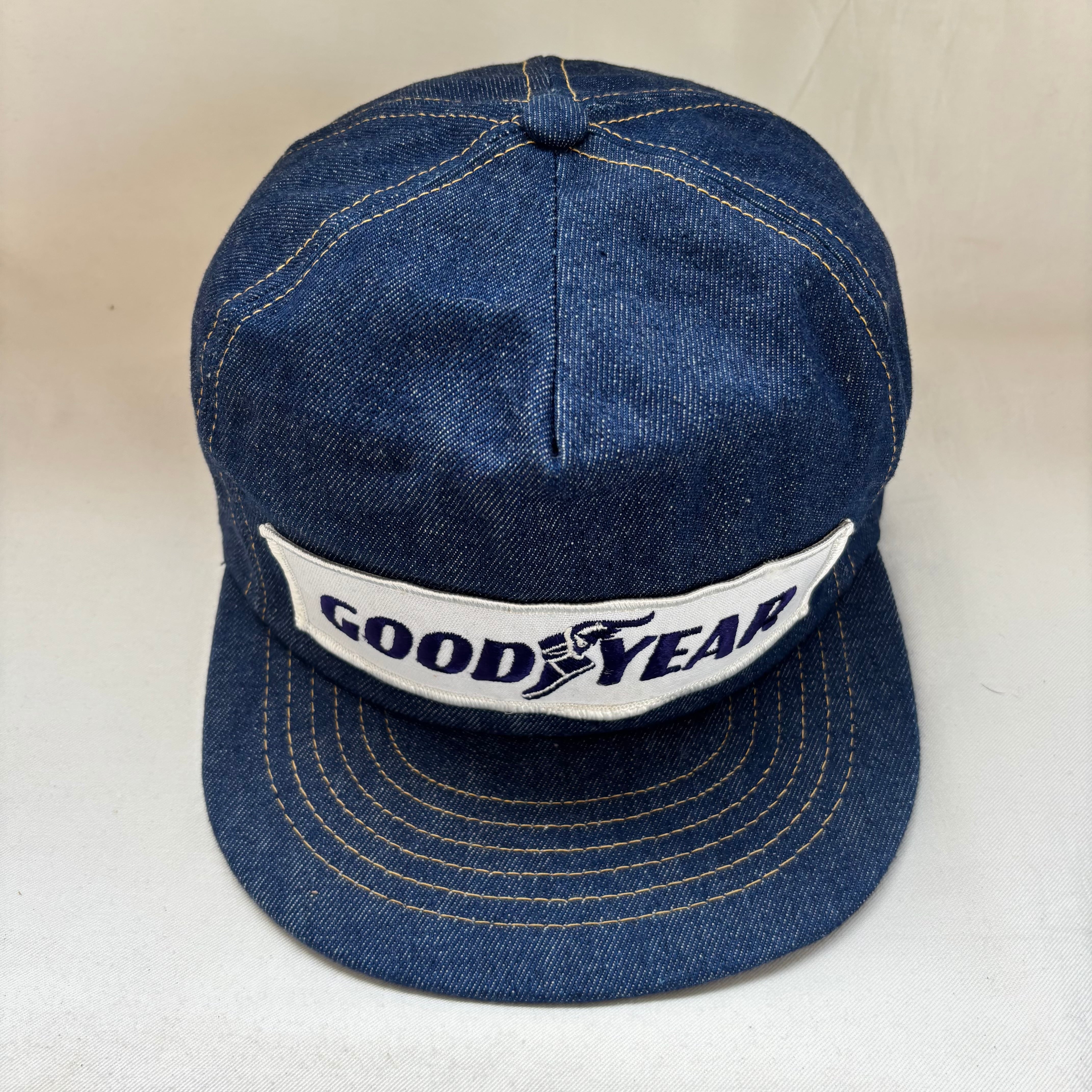 こちらはグッドイヤーのキャップの中でも非常にレアなデニム系の素材が用いられた希少な一点。