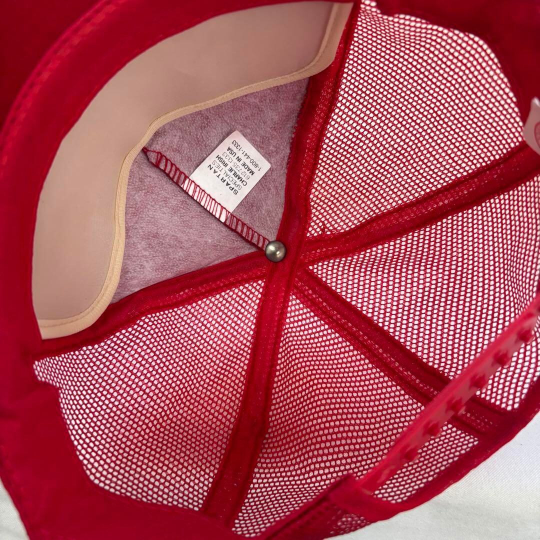 鮮やかな赤色のコーデュロイのメッシュボディが現地らしさ溢れる仕上がり。
