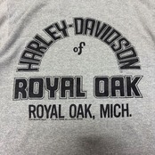 ミシガン州の著名なハーレーディーラー、”ROYAL OAK”ディーラーグッズと見えるこちらは、各年代を通して最も人気の高いモチーフであるイーグルとバーアンドシールドのデザインが描かれた王道の一枚。細かなタッチで描かれるイーグルのグラフィックは雰囲気抜群。