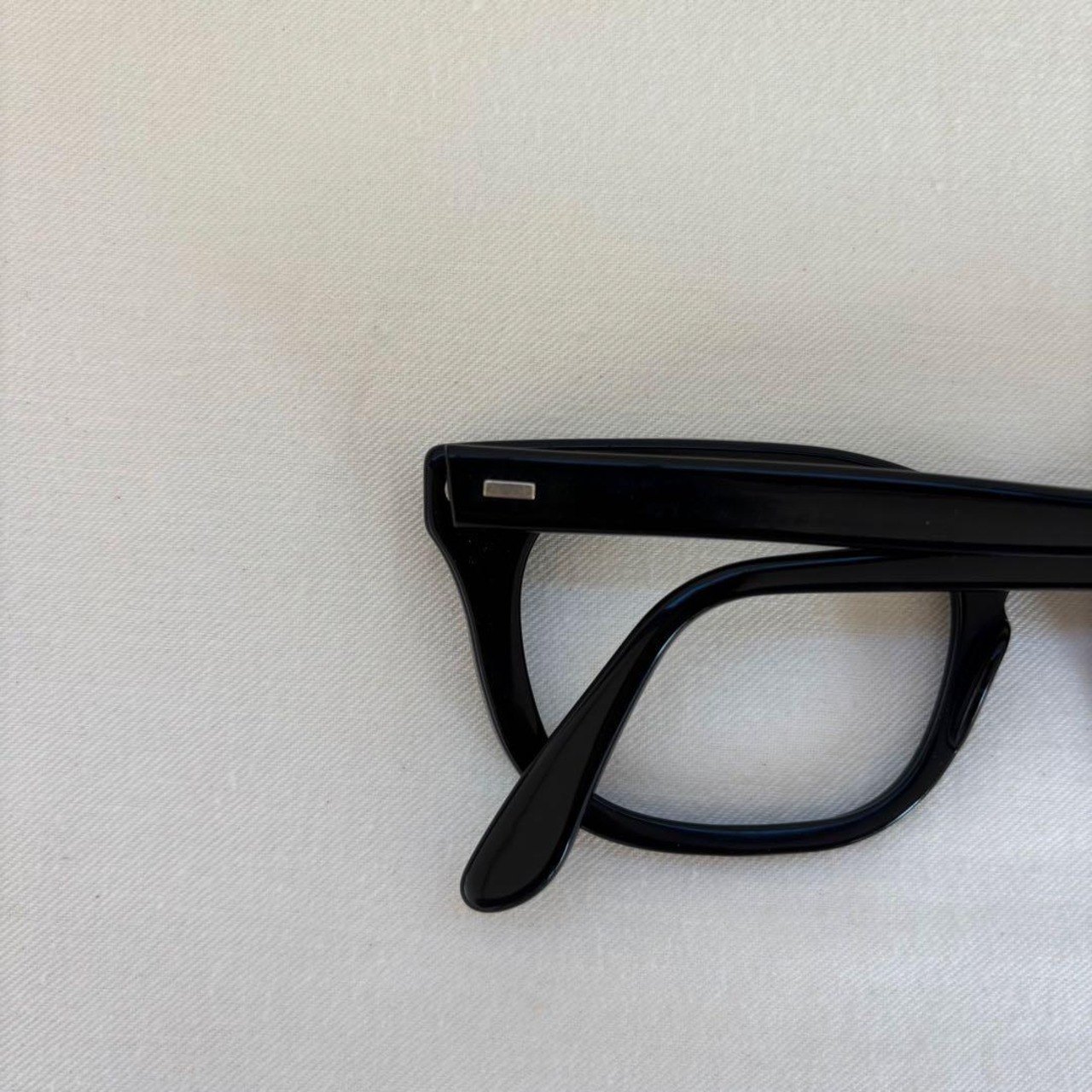 各部年代なりの小傷やスレ、両テンプル根元の撓みが見えますが、セル自体はフレーム全体の艶がしっかり残る綺麗なコンディションです。