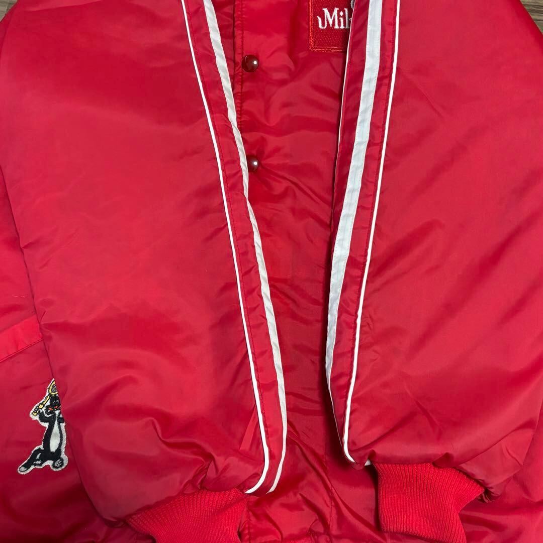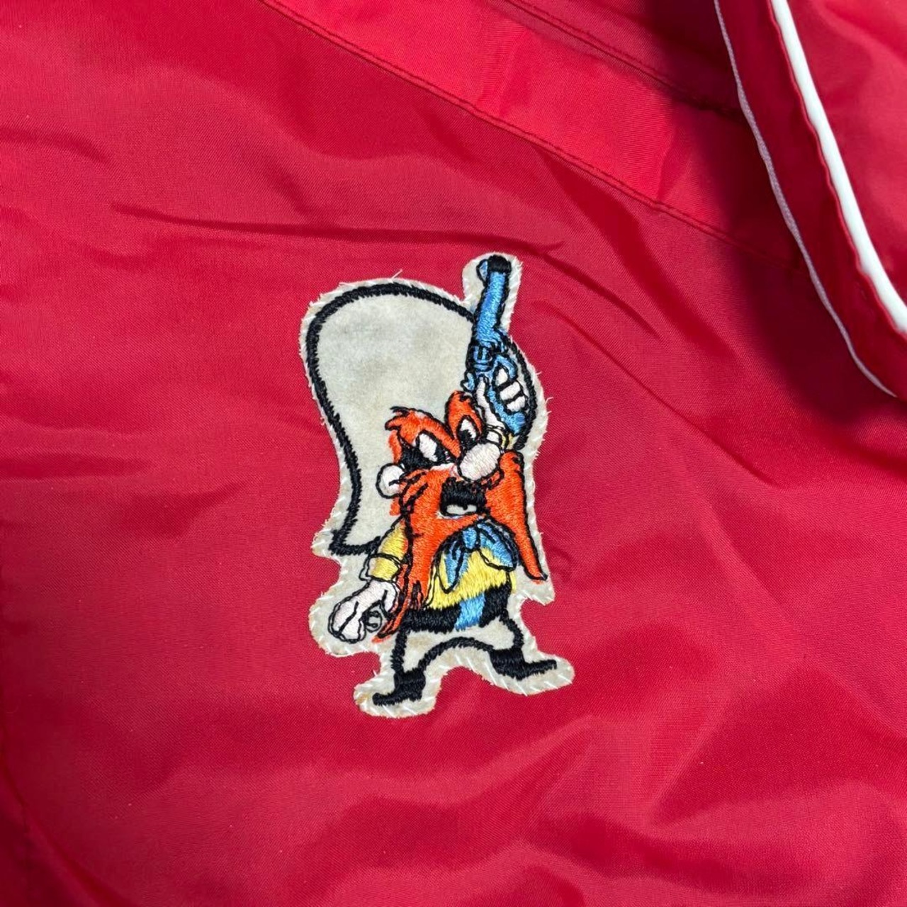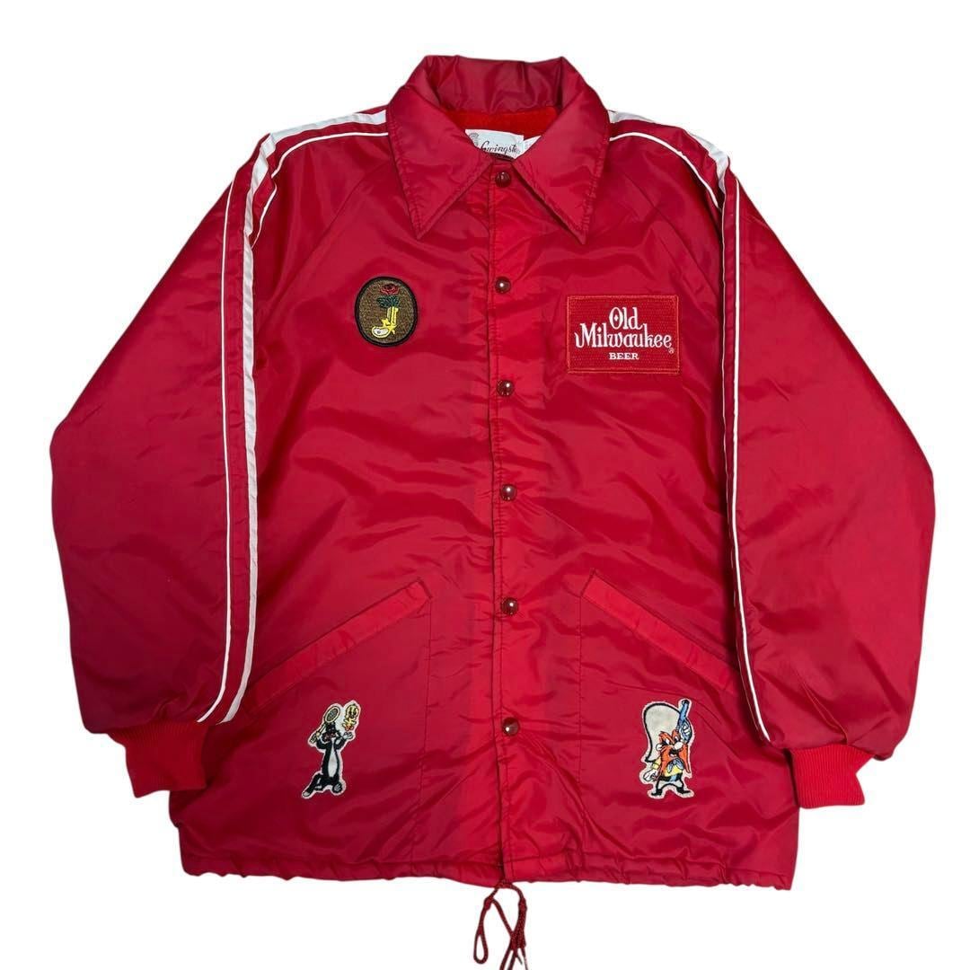 アメリカのビール銘柄”OLD MILWAUKEE”を筆頭にルーニーテューンズ等のワッペンがバランスよく施された存在感ある一枚です。