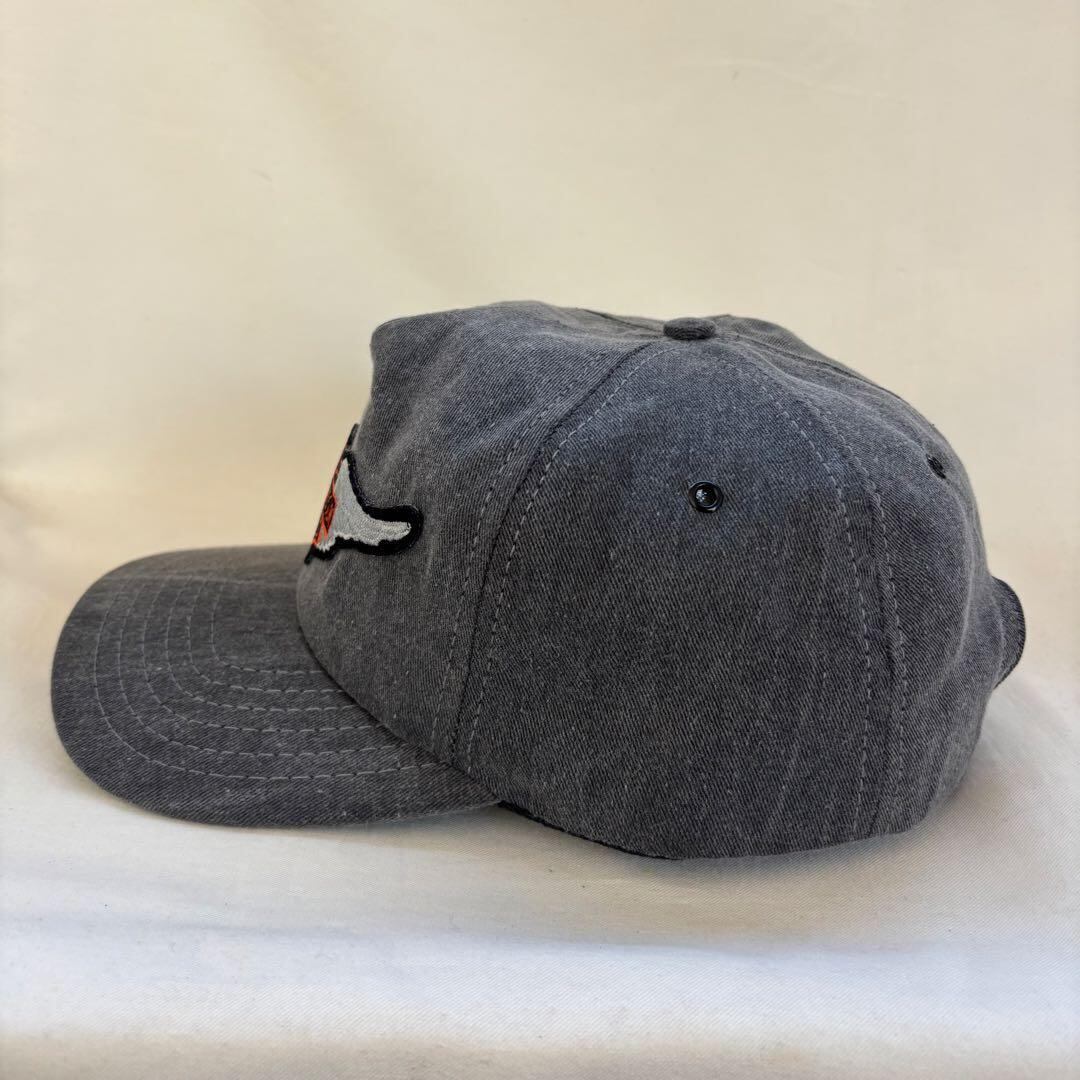 ストーンウォッシュ風のグレーのボディに、ウィングモチーフのバーアンドシールドワッペンが施されたハーレー感溢れる一点。