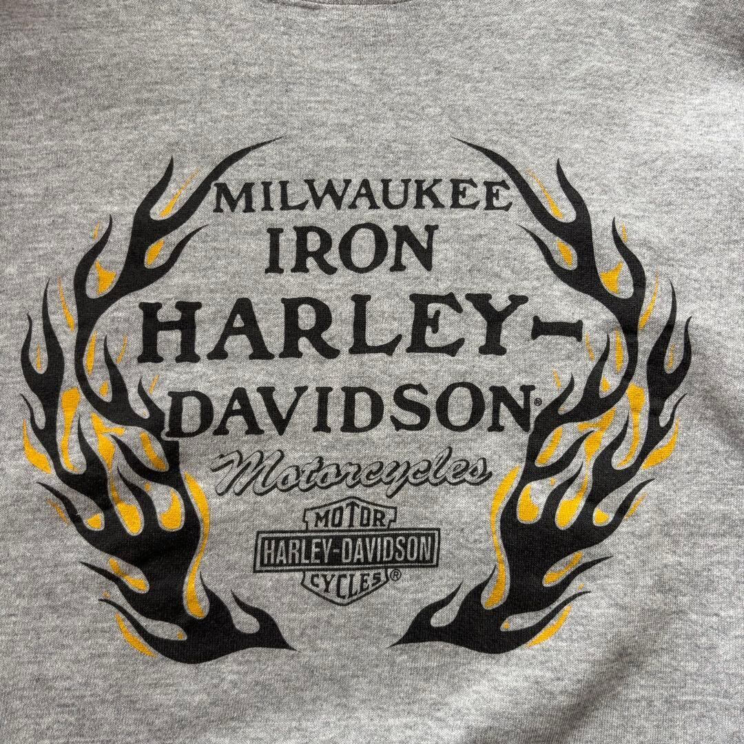 ビンテージ ハーレーダビッドソン スウェットM 袖プリント フレームス 炎 古着