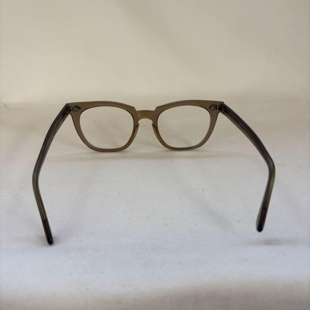テンプル芯材の緑青、ノーズパッド周辺のスレ、また非常に細かな赤いペンキの付着が見えますが、着用可能なコンディションです。