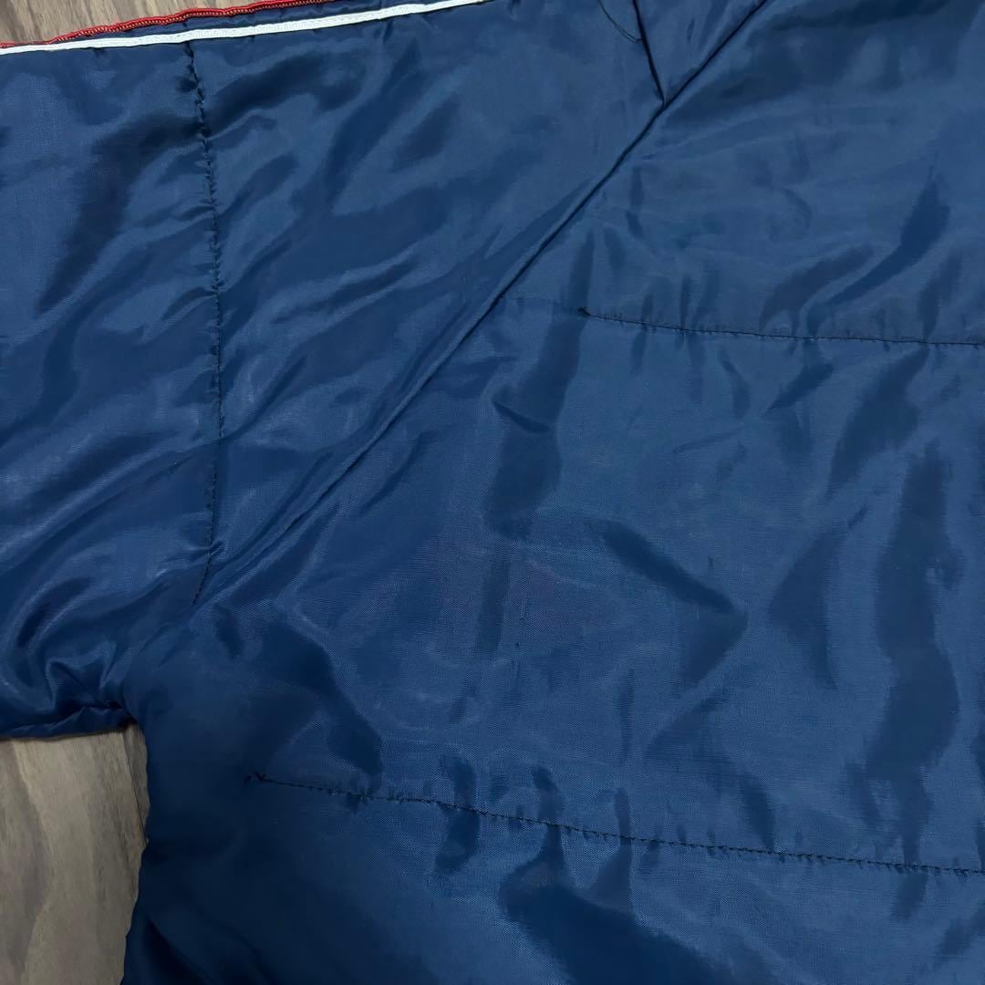 ネイビーのボディに映える赤と白のラインに、それとマッチするヨコハマタイヤのワッペンが胸と肩に施された存在感ある一点。