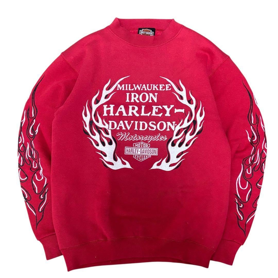 ビンテージ ハーレーダビッドソン スウェット 赤 袖プリ フレイムス 炎 90s