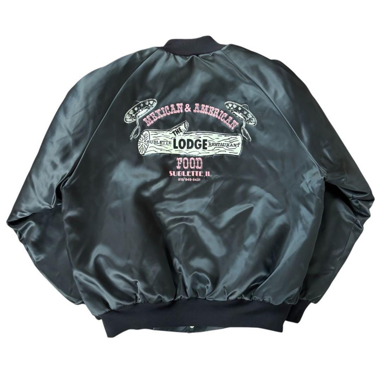 イリノイ州のレストランのユニフォームと見えるこちらは、丸太を基調にメキシコの代名詞であるソンブレロが共に描かれた、レストランの色味が表現された雰囲気ある仕上がり。フロントは名前のみプリントされたシンプルなデザイン。