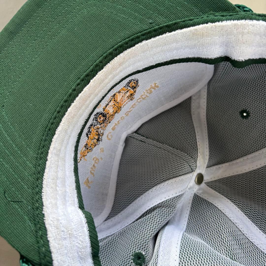 ビンテージ トラッカーキャップ グリーン レザーストラップ 古着 帽子 刺繍 緑