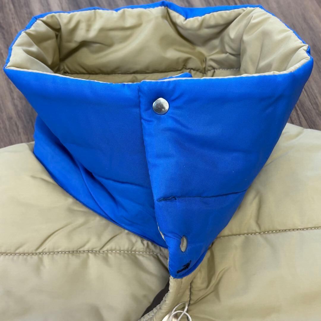 表地がベージュ、裏地がブラウン、首裏の当て布がブルーと、同年代のアウトドア、スキーウェアらしいカラーリングが抜群の一枚。