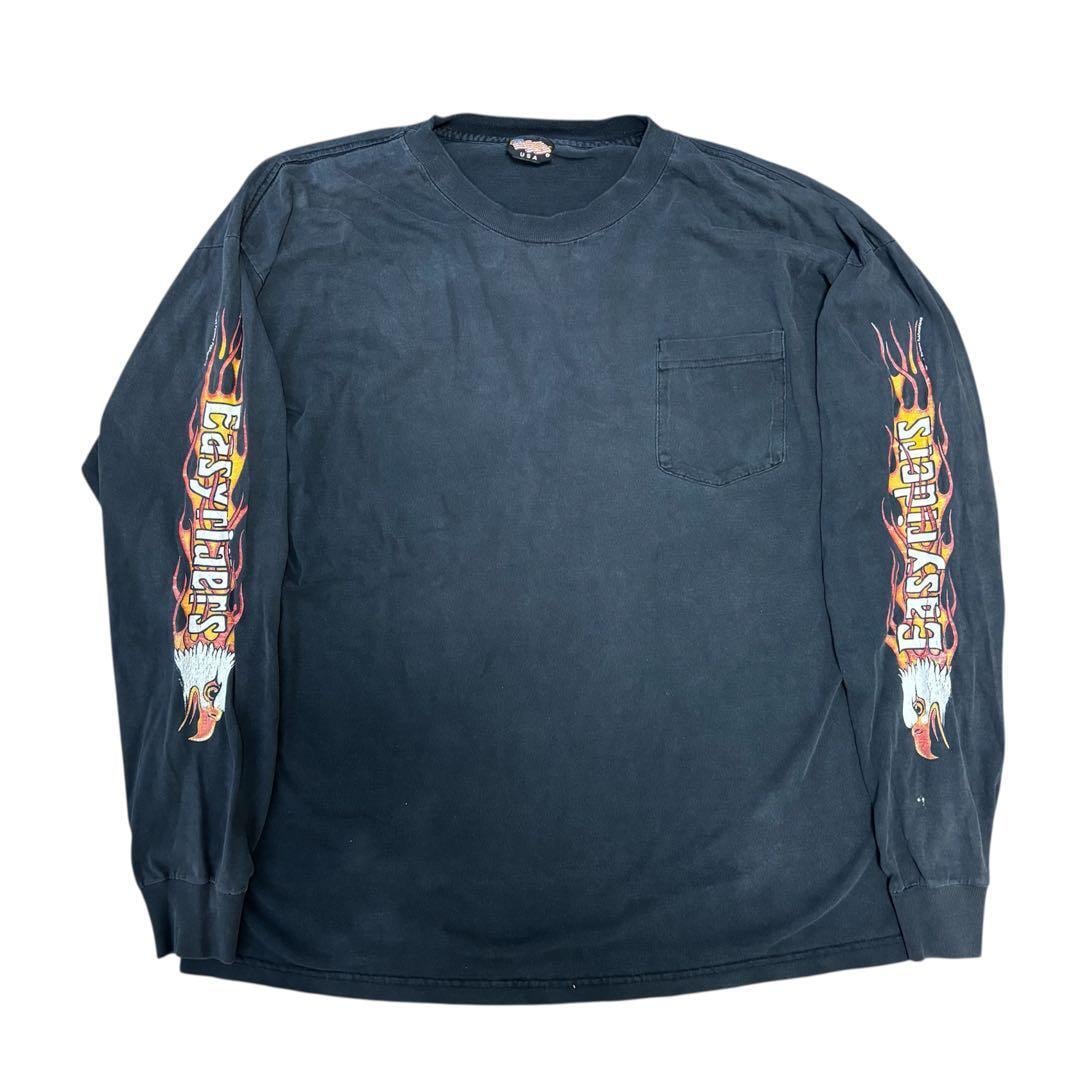 90s EASYRIDERS ロンT PBR 袖プリ フレイムス ハーレー 炎