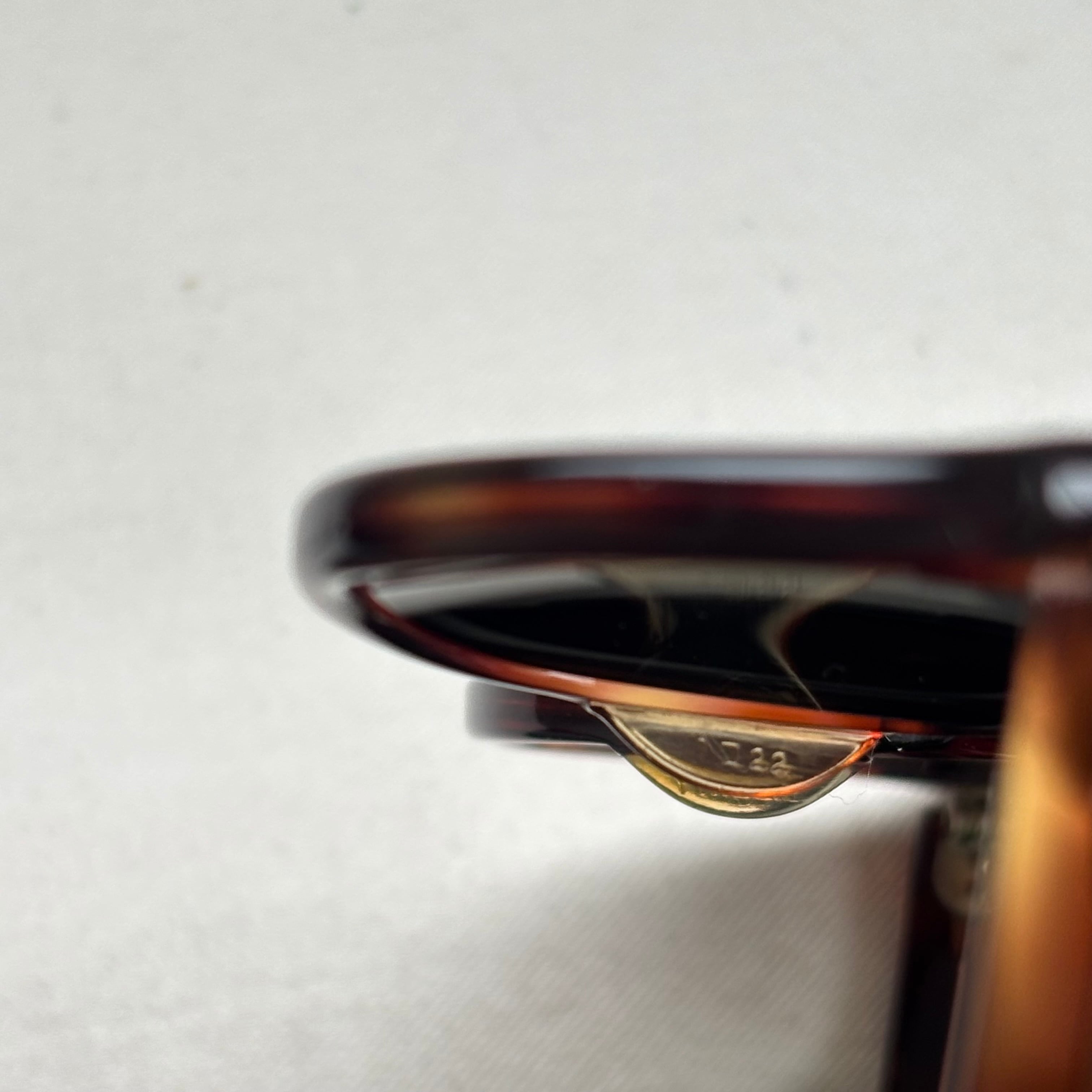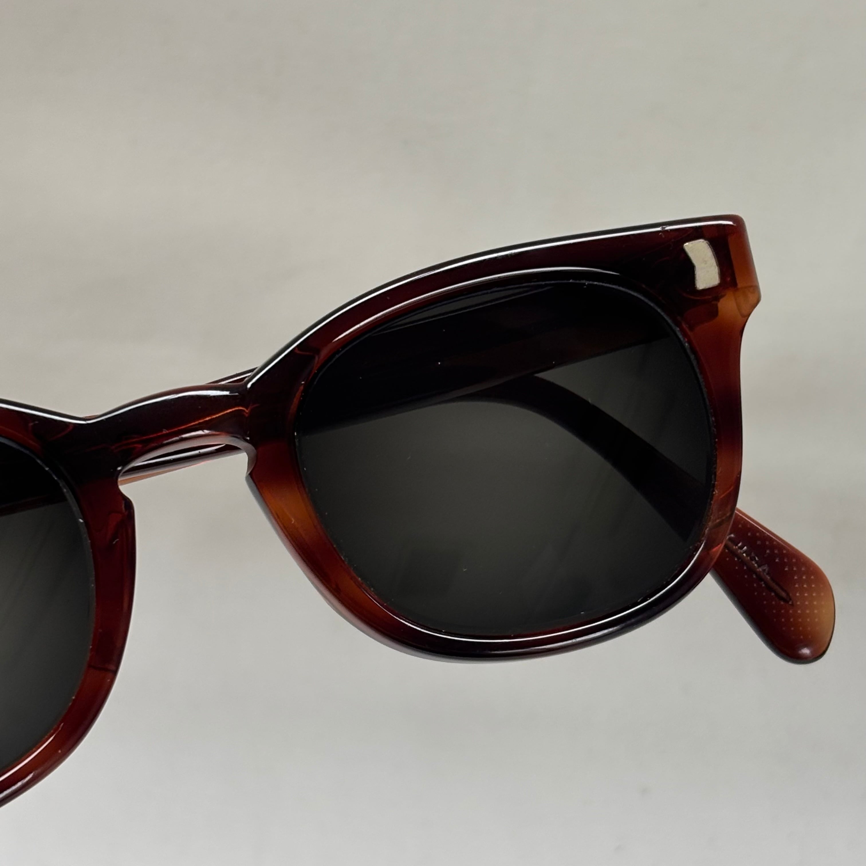 ブランドのラインナップの中でも著名なこちらのモデルは、鍵穴の様な形状のヒンジのオーナメント、また透き通る様なフェード系の色味と、ビンテージフレームらしい一本。