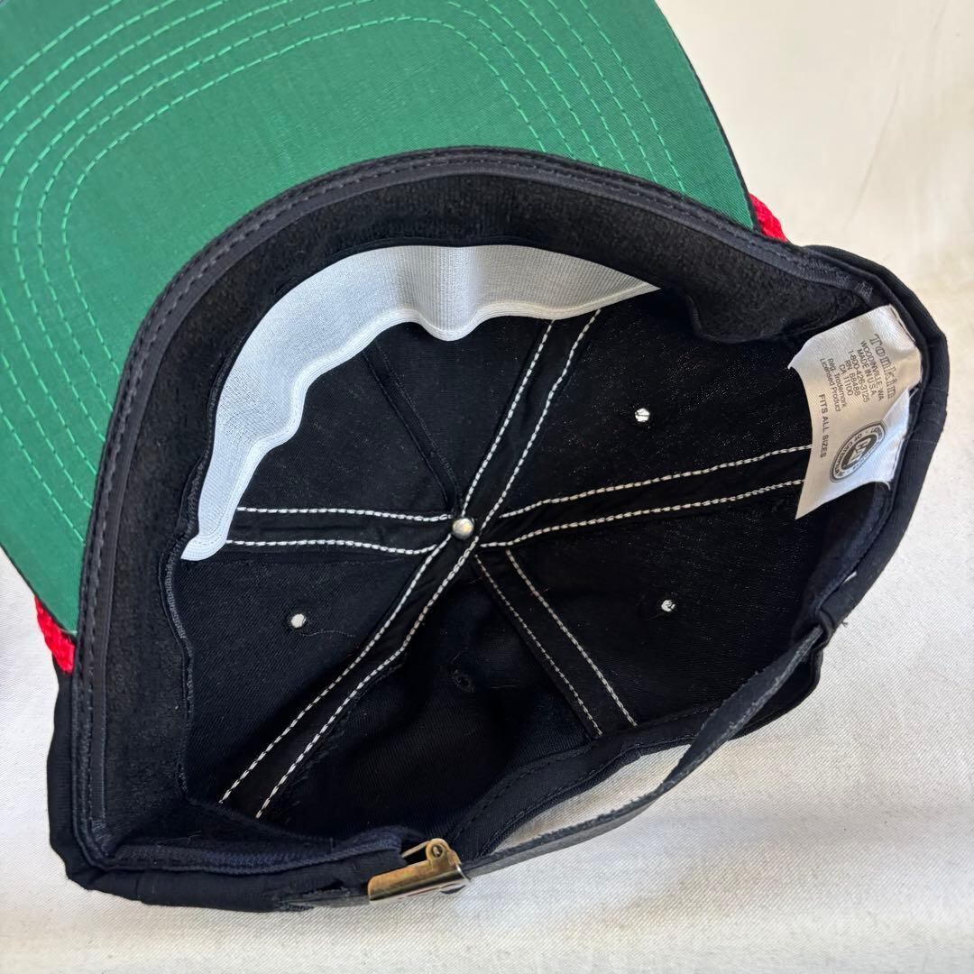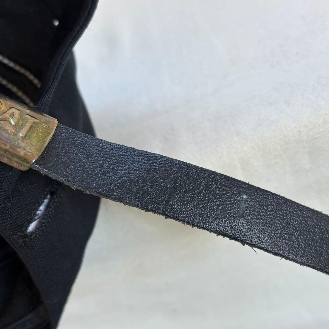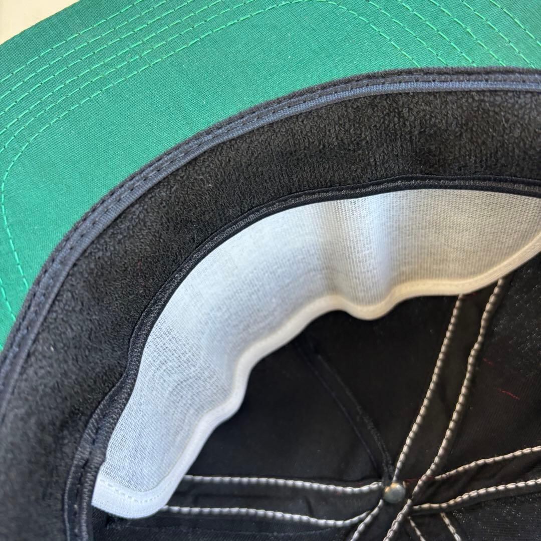またレザーストラップが用いられており、金具には”CAT”の刻印、またバイザー裏の緑の当て布や、スベリのパイル素材など豪華な仕様。