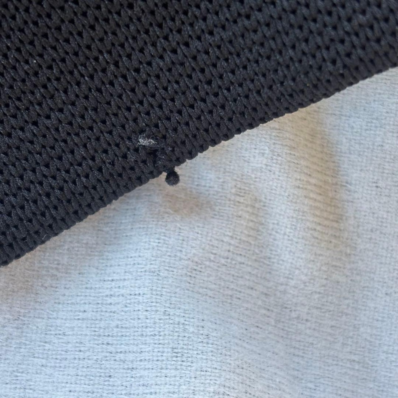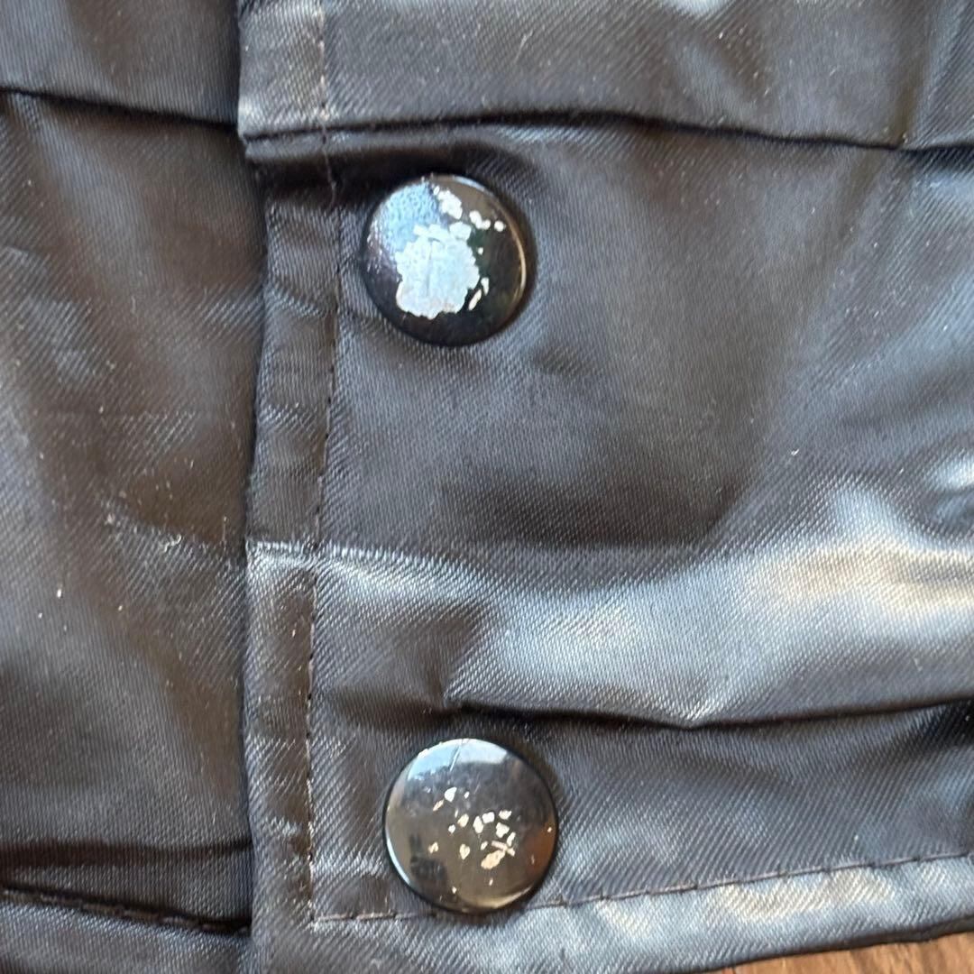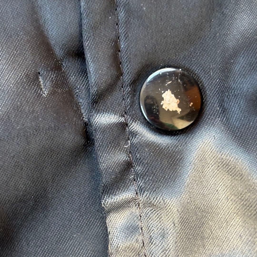 折皺、リブの僅かなホツレ、ボタンの表面の削れが見えます。