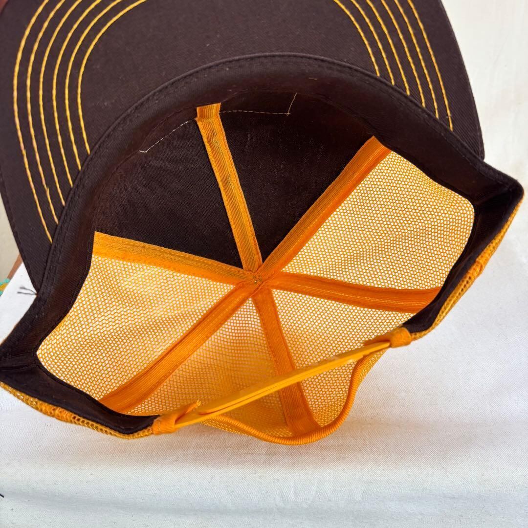 トラック販売店の販促品と見えるこちらは、ステッチやワッペンの細部までブラウンxイエローの間違いないカラーリングで統一された存在感溢れる一点。