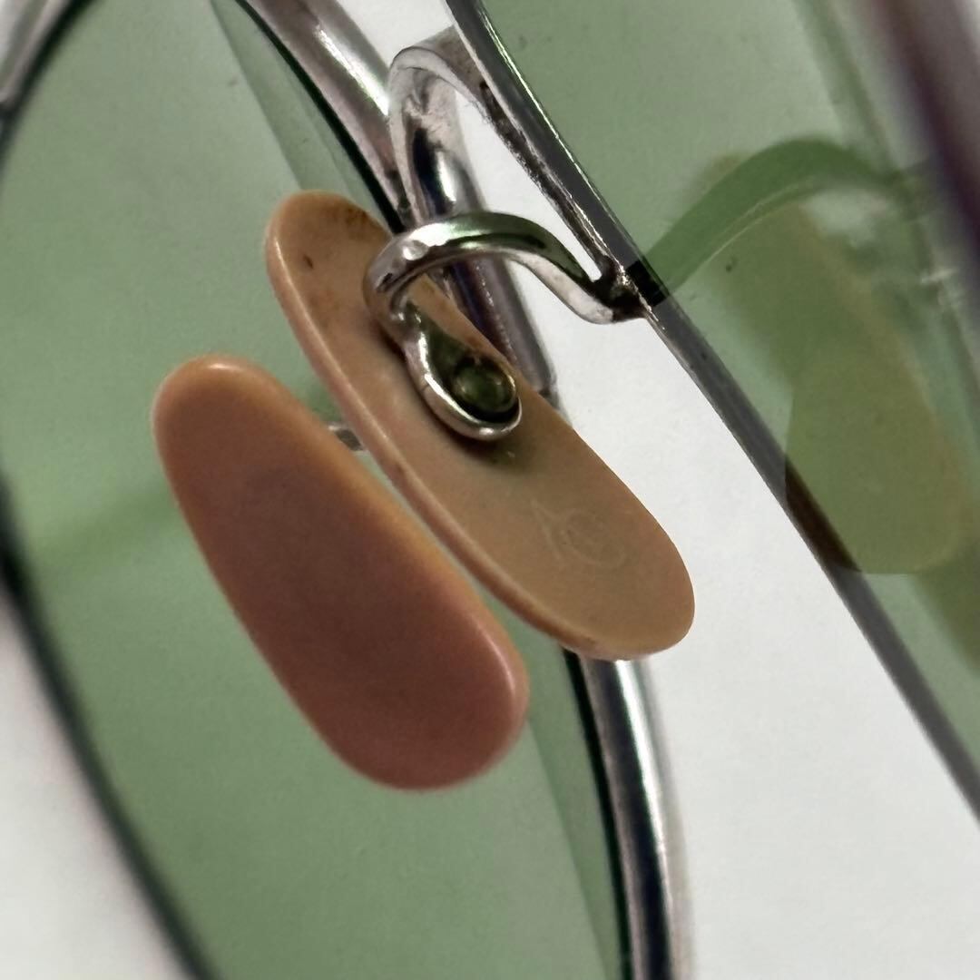 シルエットは王道のティアドロップ/アビエータータイプ。蝶番やテンプルの細かな彫金が年代ならではのものづくりを感じさせます。