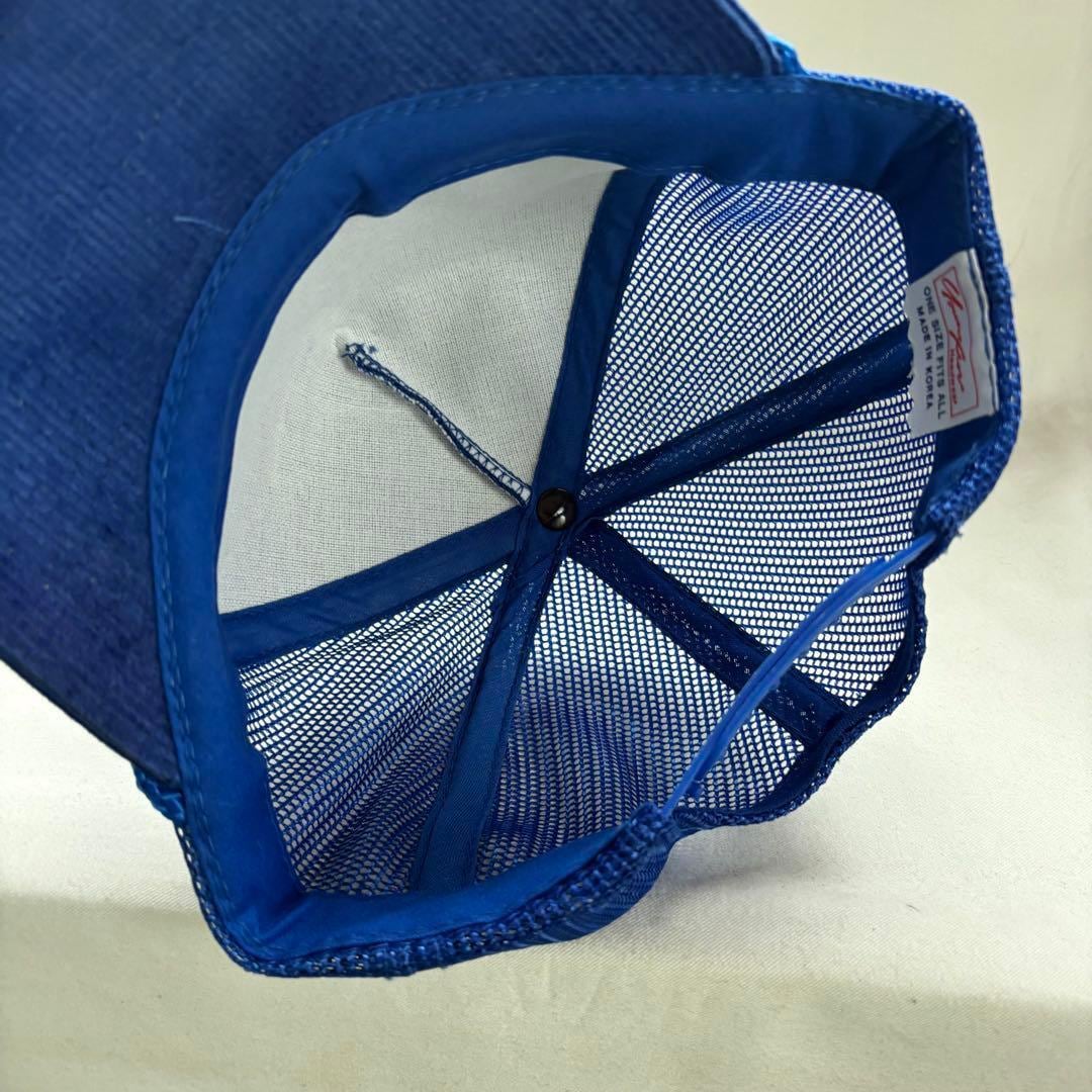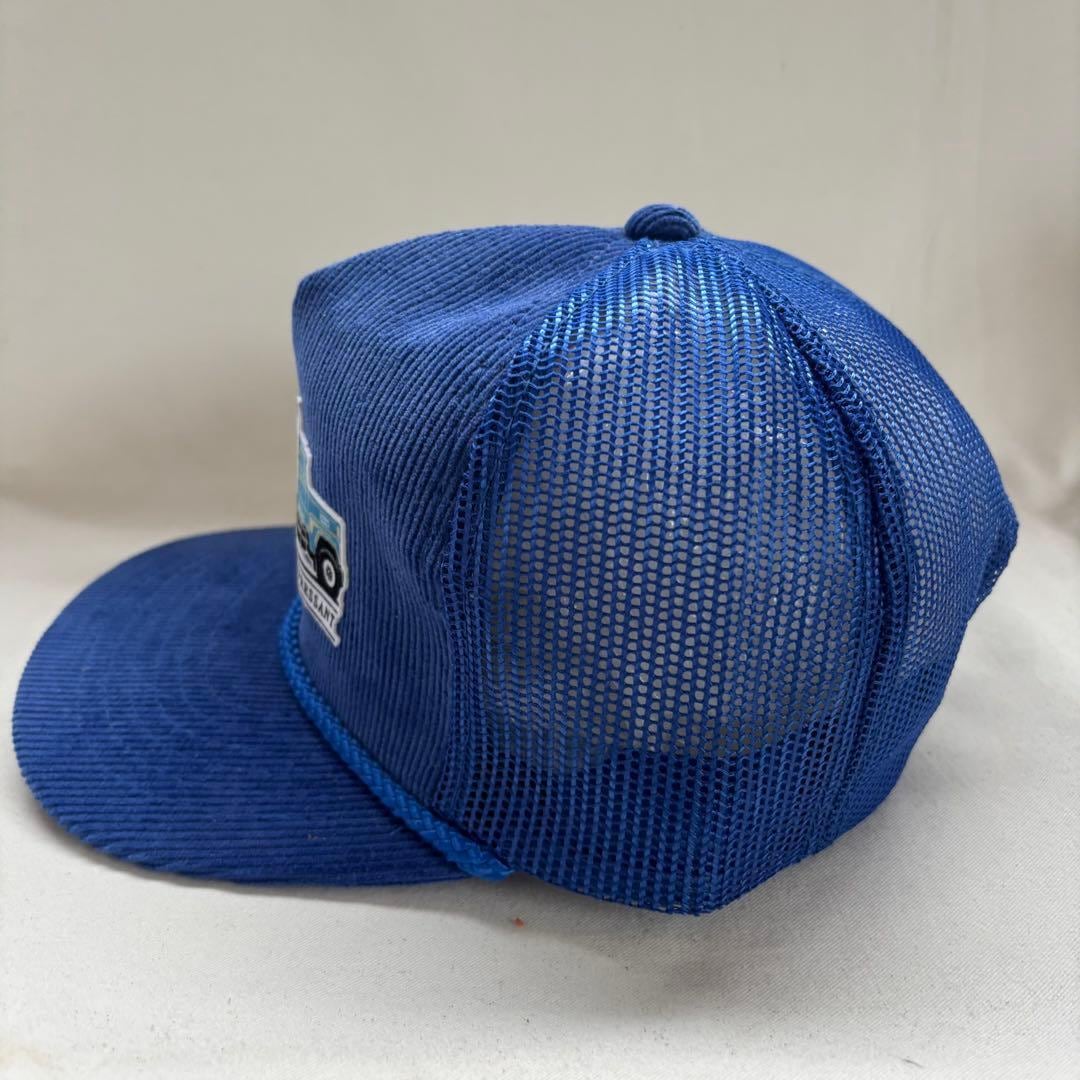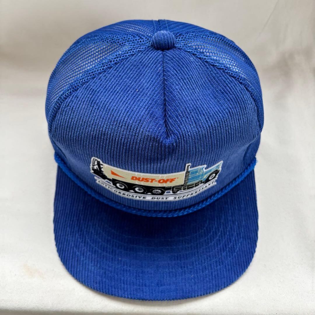 80s デッドストック キャップ コーデュロイ トラック 帽子 青 ビンテージ