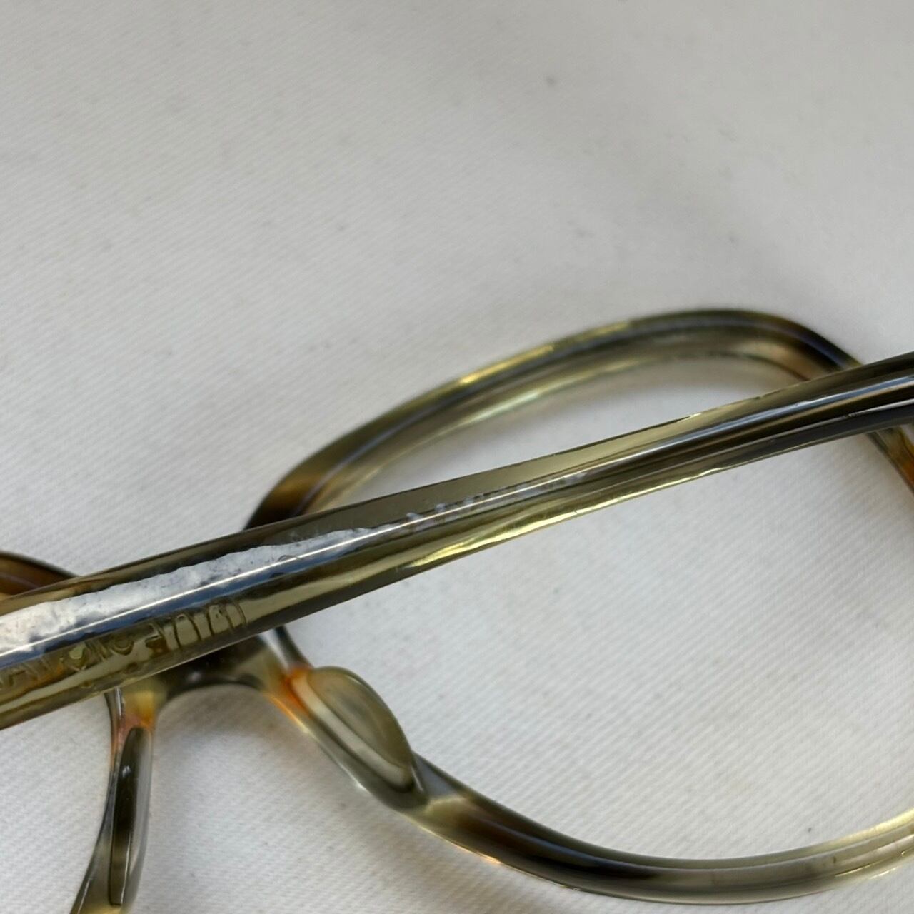 年代なりのヤレと小傷、左テンプルの表面の撓みが見えます。