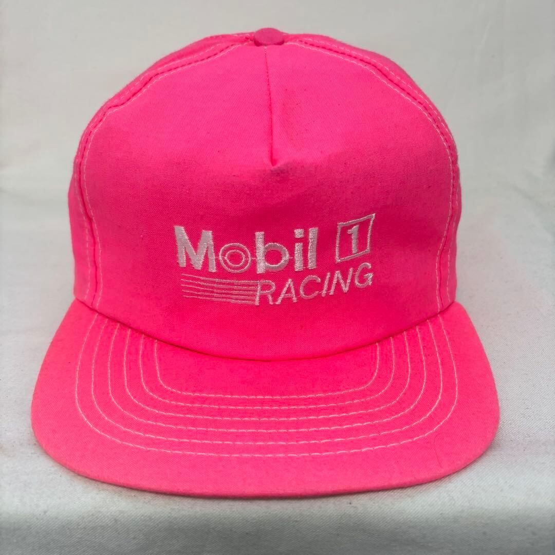デッドストック MOBIL キャップ アメリカ製 モービル ネオンピンク 帽子