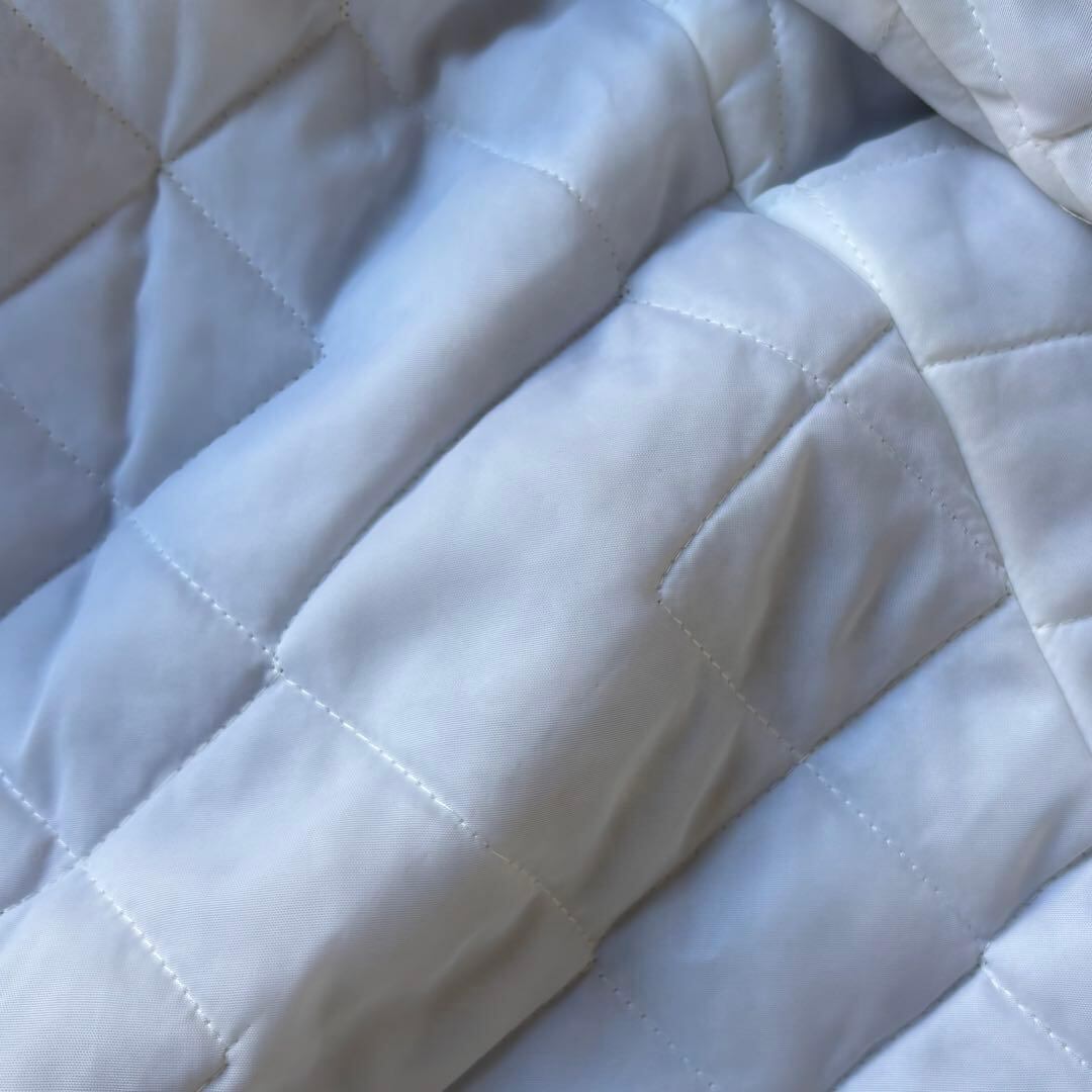 少しのシミ、またインナーのキルティングのほつれが見えます。