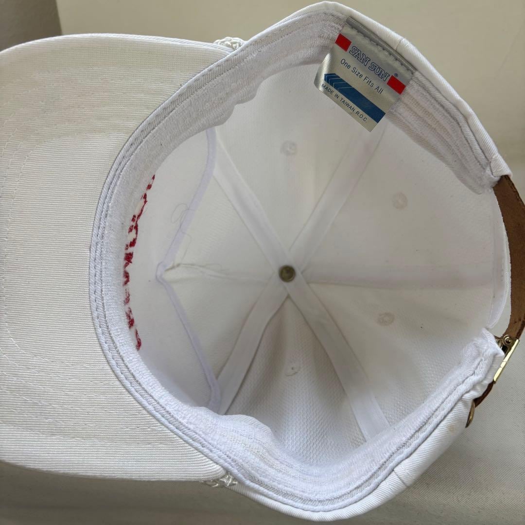 デッドストック キャップ 白 レザーストラップ ビンテージ 帽子 PREMDOR