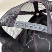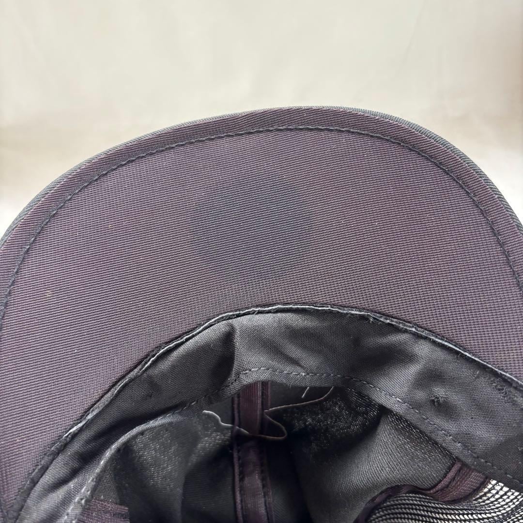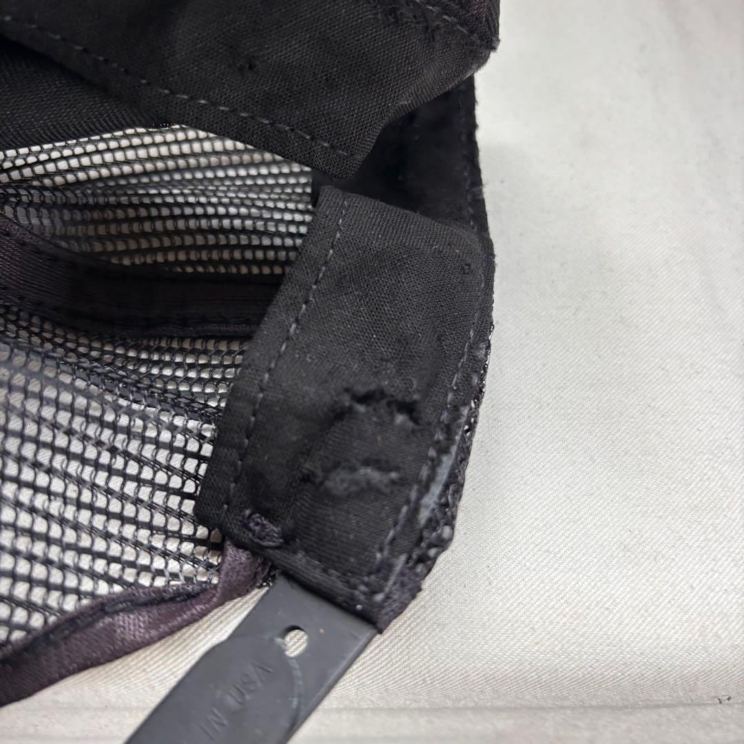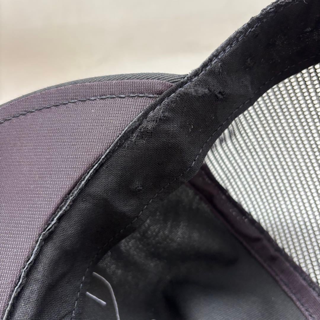 取り除いたフォームの僅かな残留分、バイザー裏の褪色、またリーフの刺繍糸と滑りに劣化が見え、スベリは穴や裂けが見えますが、着用可能なコンディションです。