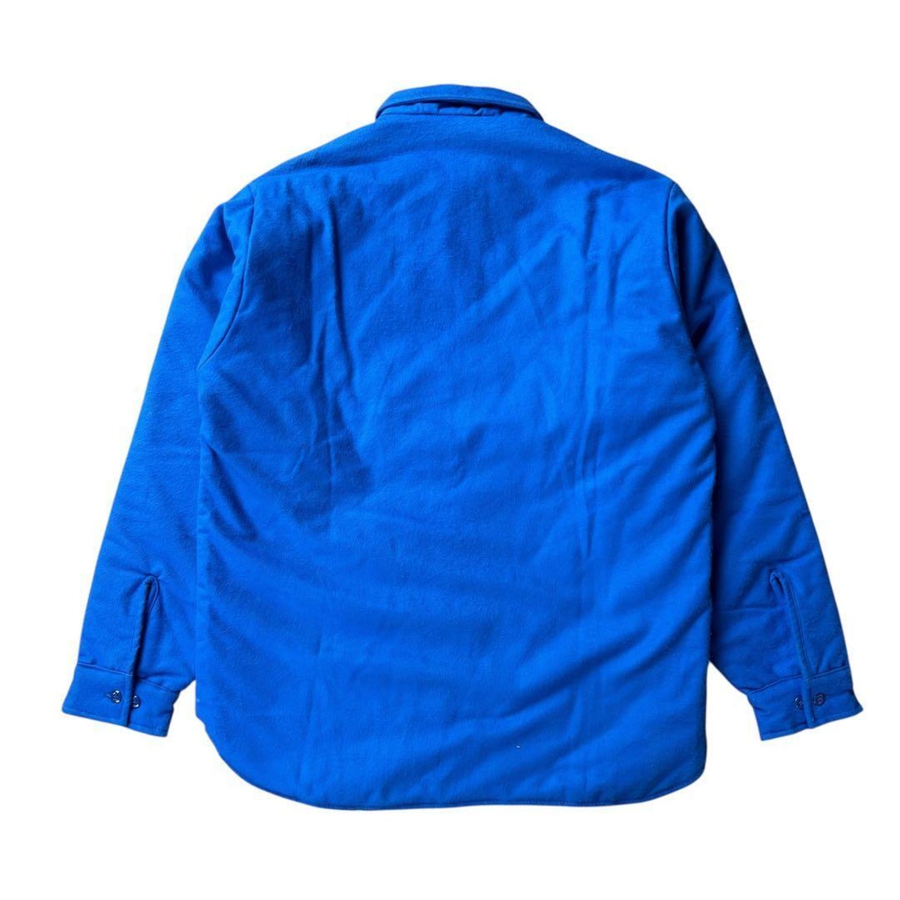カラーは鮮やかなロイヤルブルー系の色味ながらも、シャモアクロスや裏地のキルティング等、アウトドア要素溢れる仕上がり。