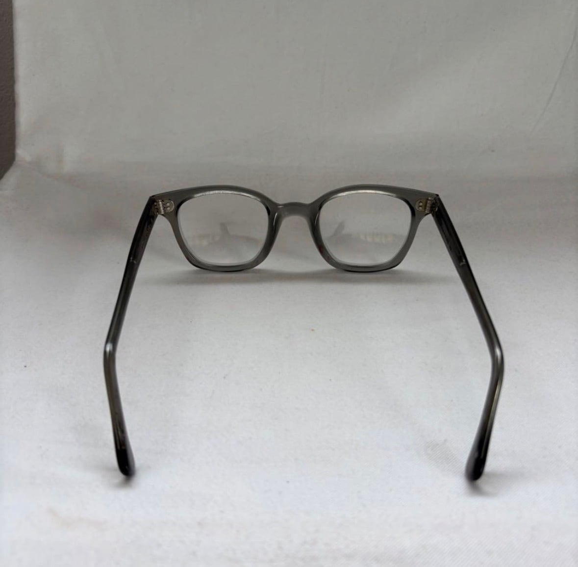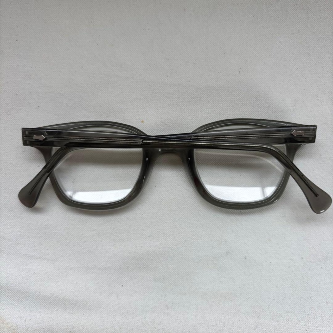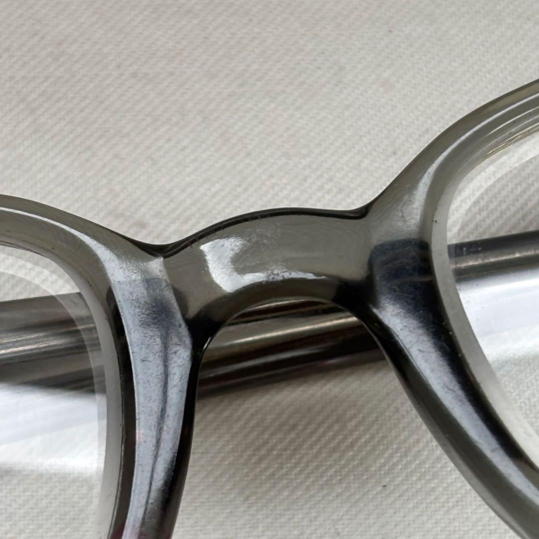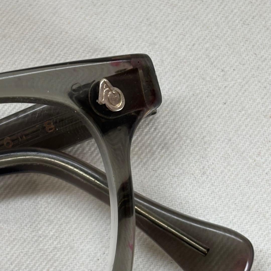 各部年代なりの小傷やスレ、ノーズパッドとフレーム端の赤いシミの付着、右蝶番の動きのやや渋さがが見えますが、実用可能コンディションです。