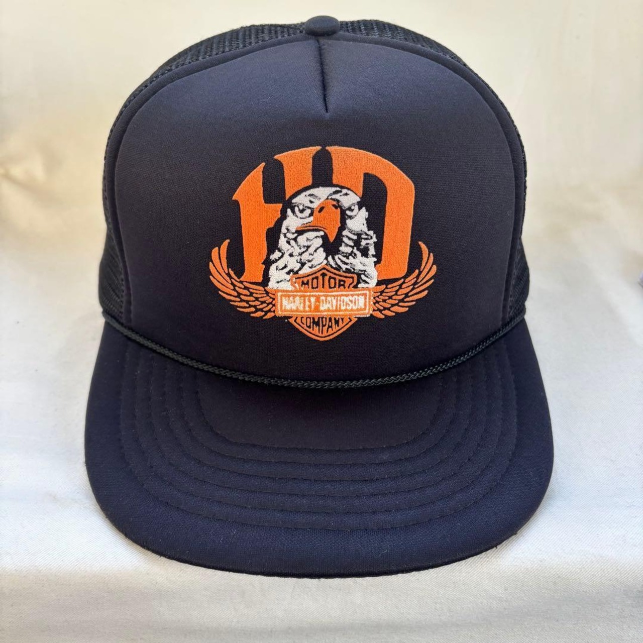 1980~90年代頃のものと見えるHARLEY DAVIDSONのトラッカーキャップです。