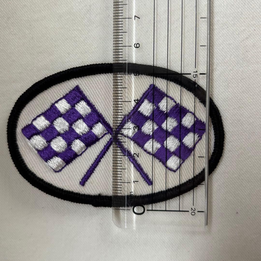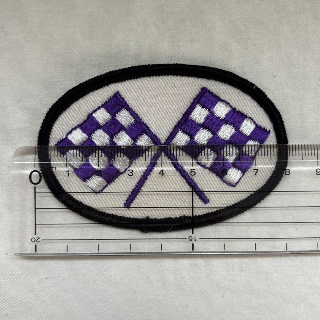 70s デッドストック チェッカーフラッグ ワッペン ビンテージ パープル 古着