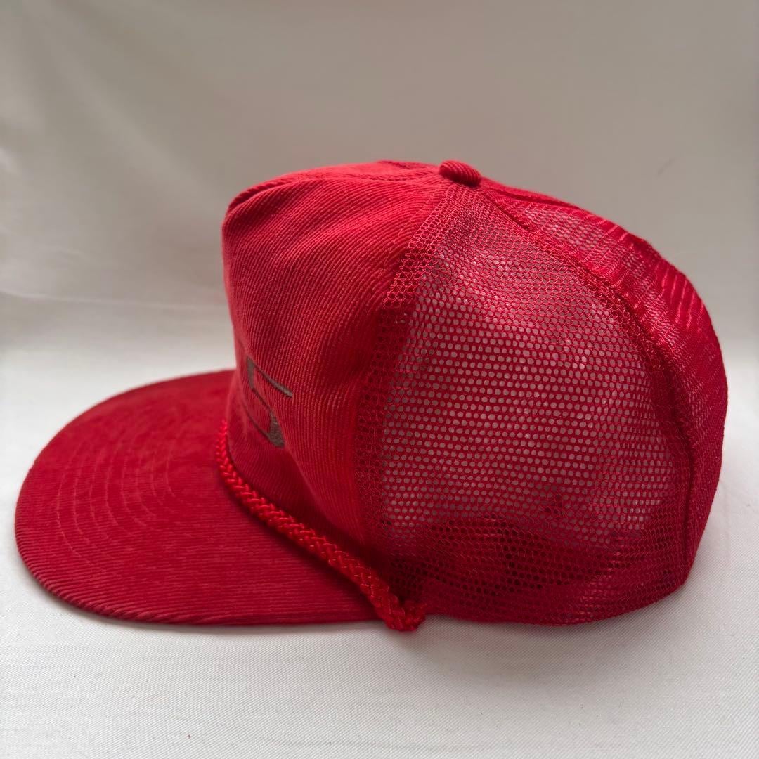ビンテージ コーデュロイ トラッカーキャップ 帽子 レッド キャップ 古着 赤