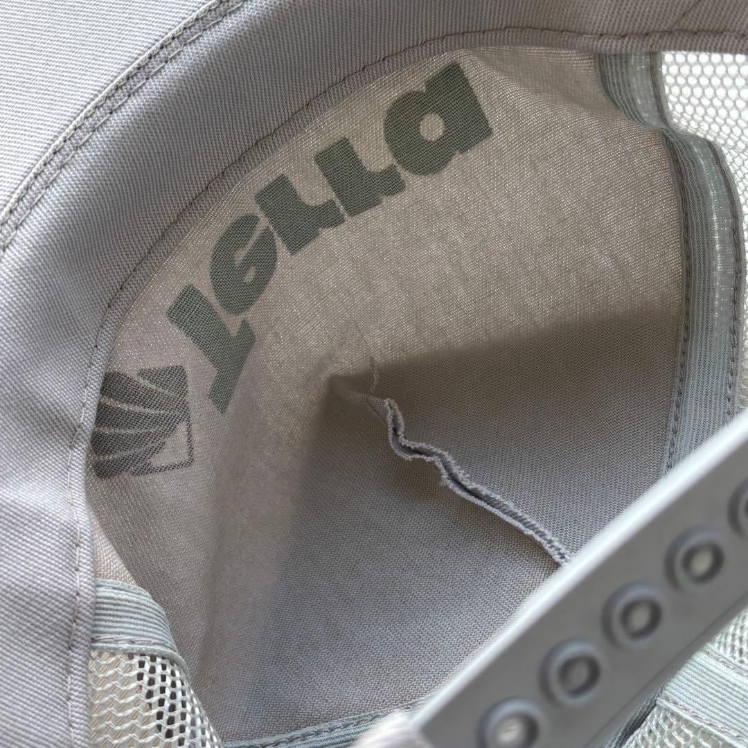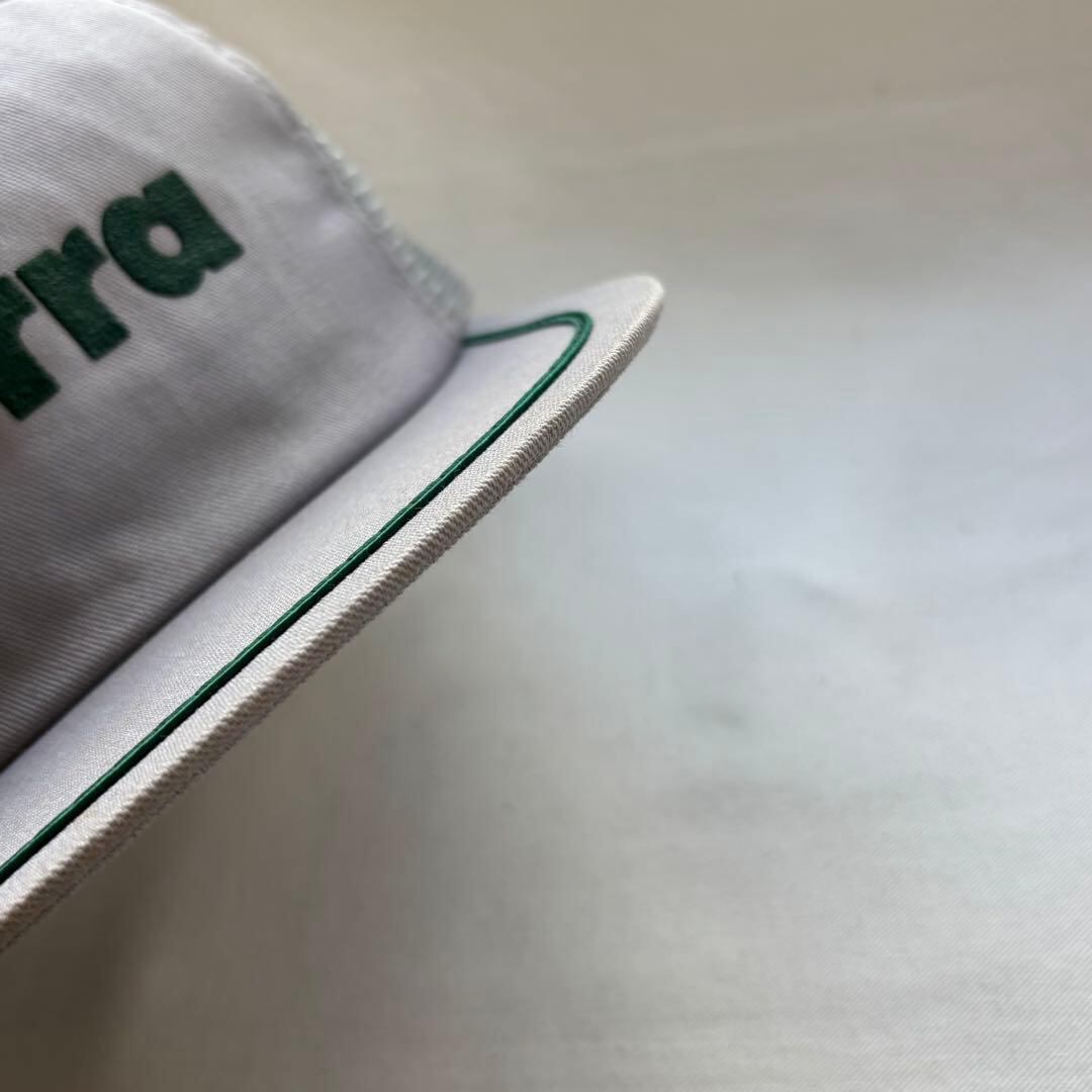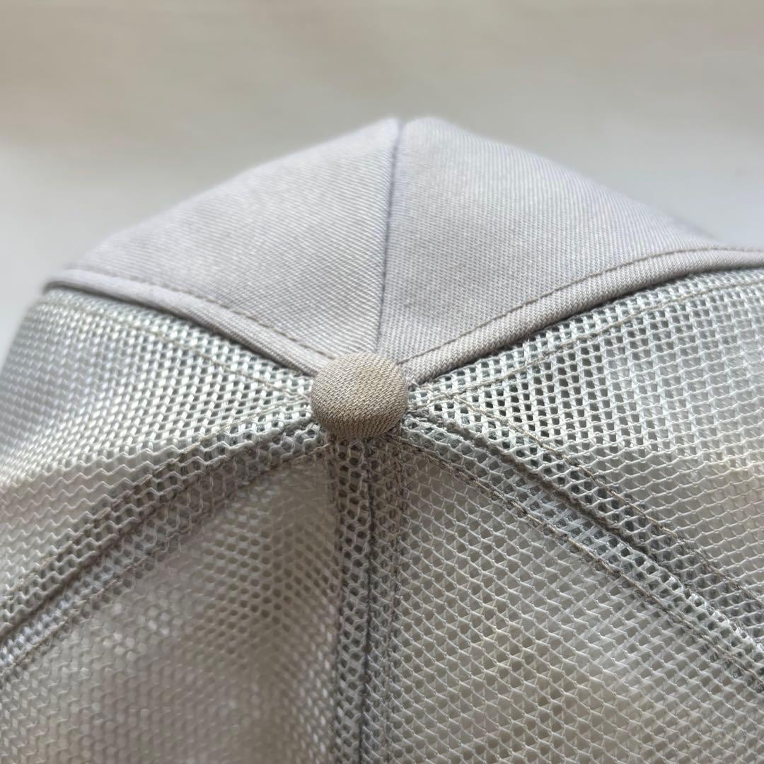企業の販促品と見えるこちらは、グレーのボディにプリントとバイザーのラインのグリーンが映える雰囲気の良い一点。