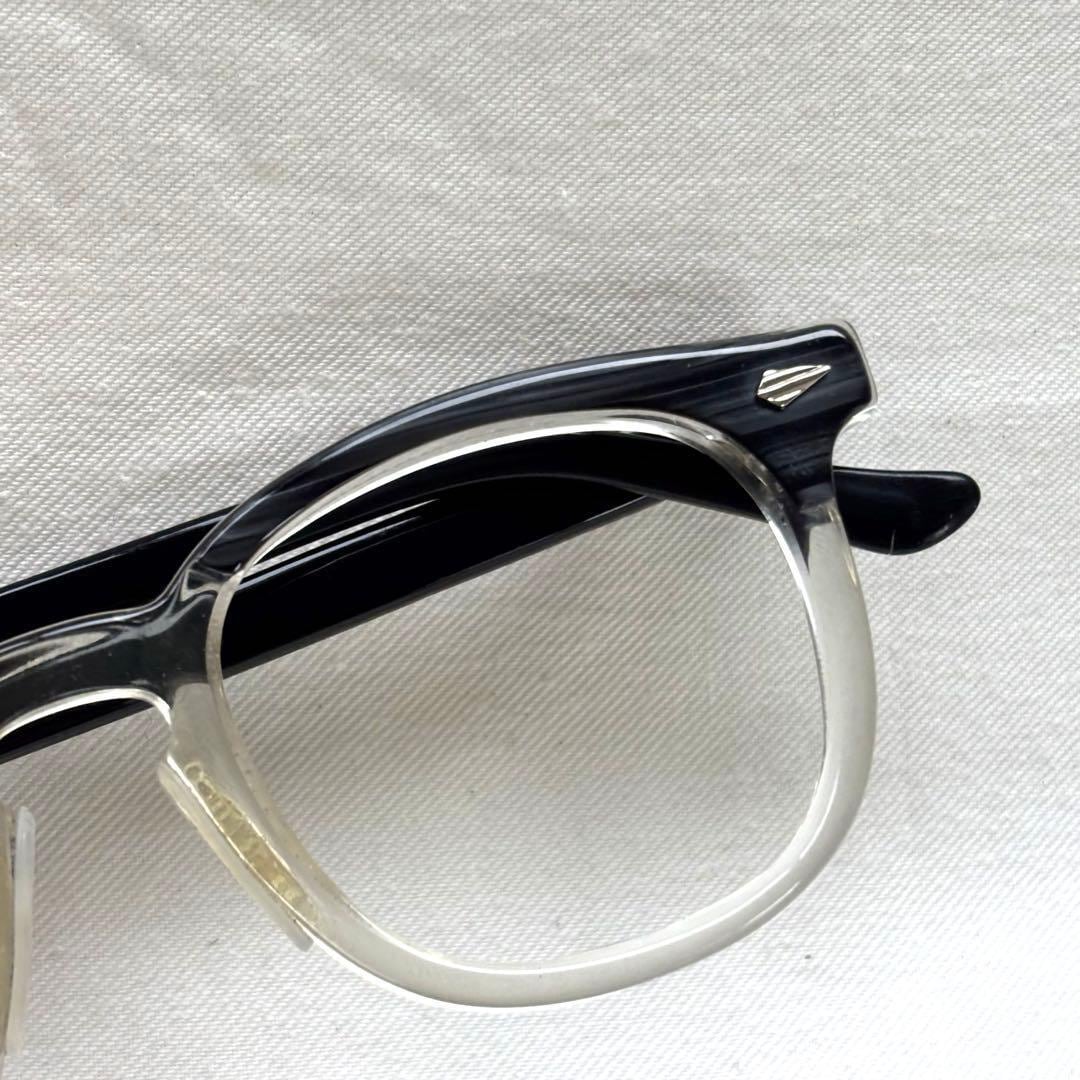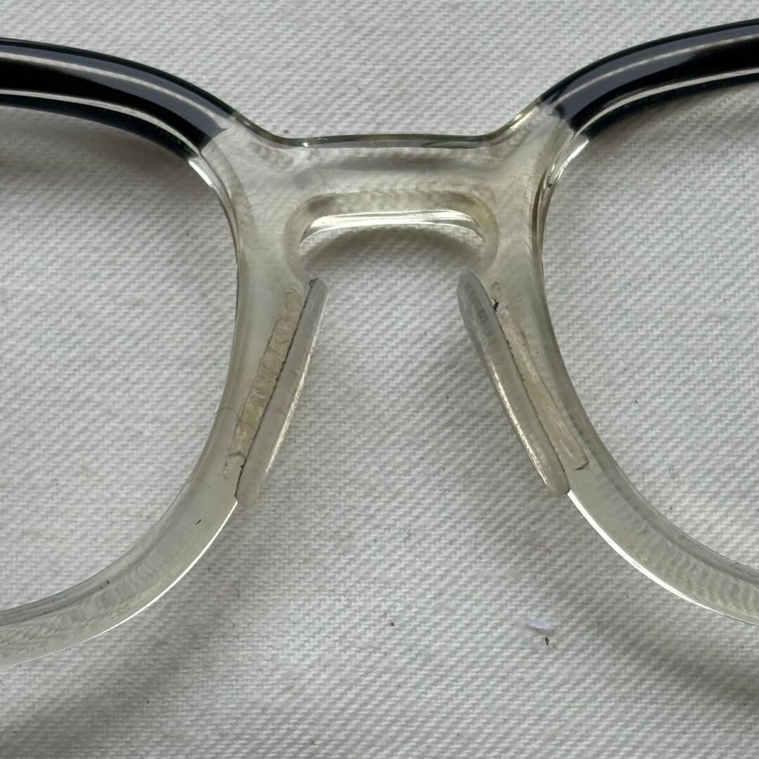 年代なりのスレや小傷、ノーズパッドが取り除かれており、代わりにシールタイプのパッドが取り付けられています。またテンプルはSHURON社製の流用、僅かな酸化臭は見えますが、着用可能コンディションです。