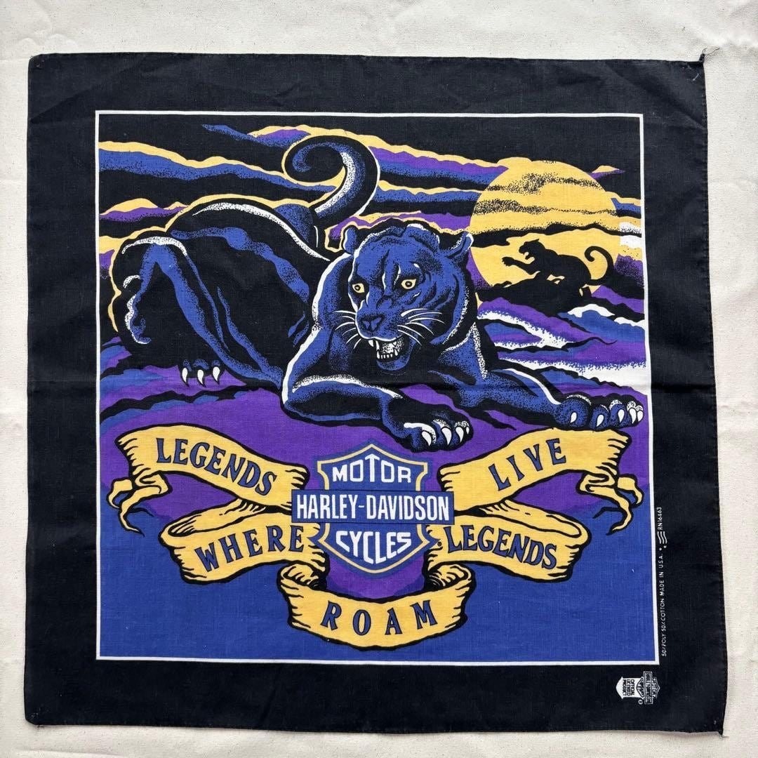 ビンテージ ハーレーダビッドソン バンダナ アメリカ製 パンサー クロヒョウ 豹