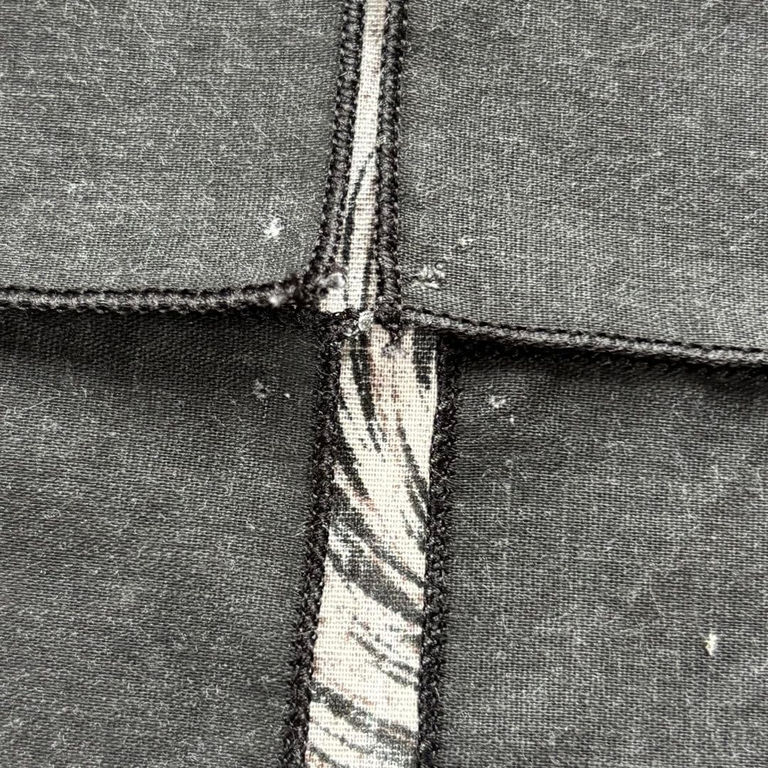 着用感、織傷、四隅のピン跡が見えます。