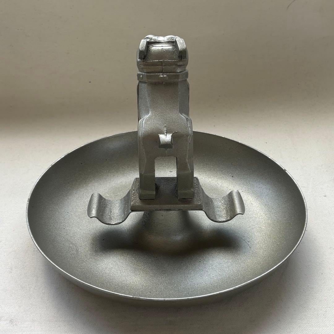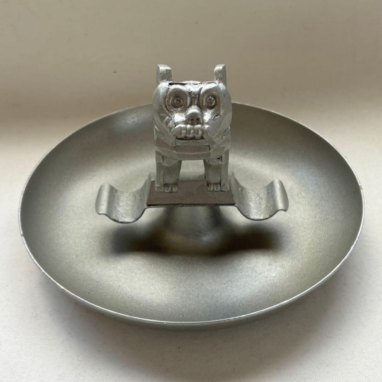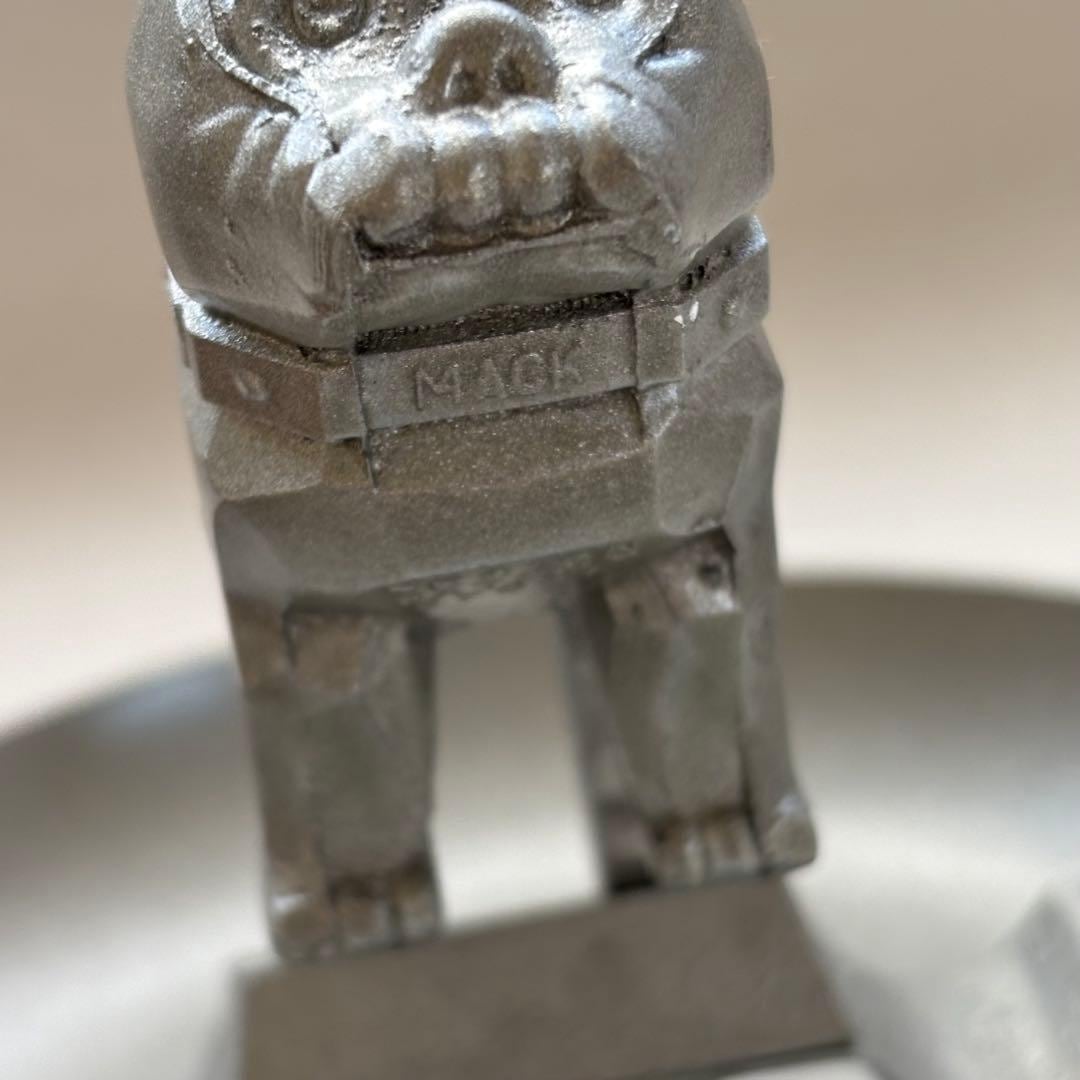 トラックのエンブレムにも用いられるブルドッグのオーナメントが皿の上に配された一点。