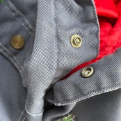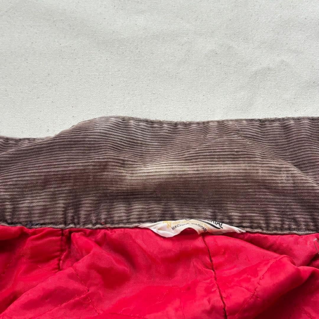 4箇所のポケットにコーデュロイが当てられた襟、また赤のキルティングが目を惹く中綿と、王道のディテール。