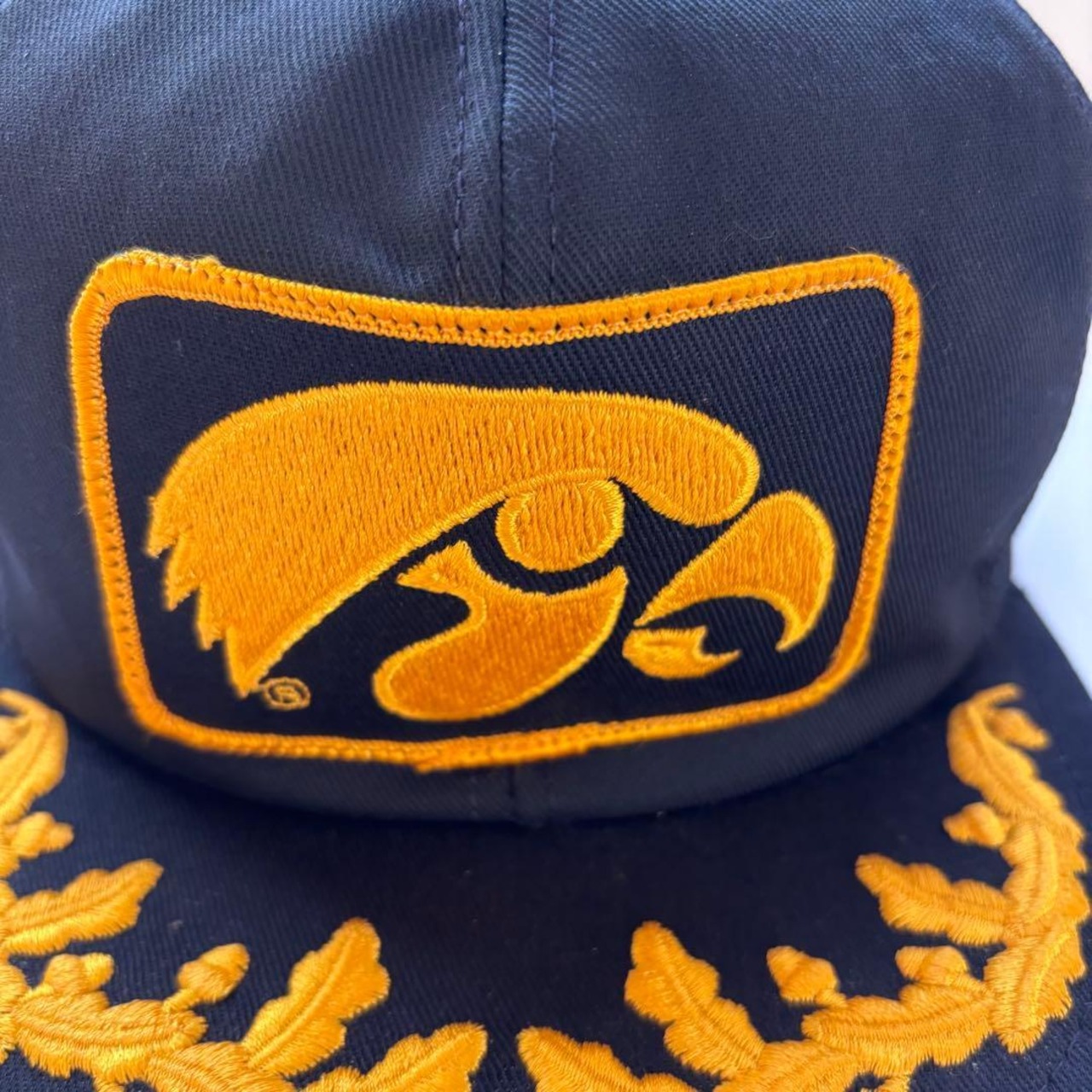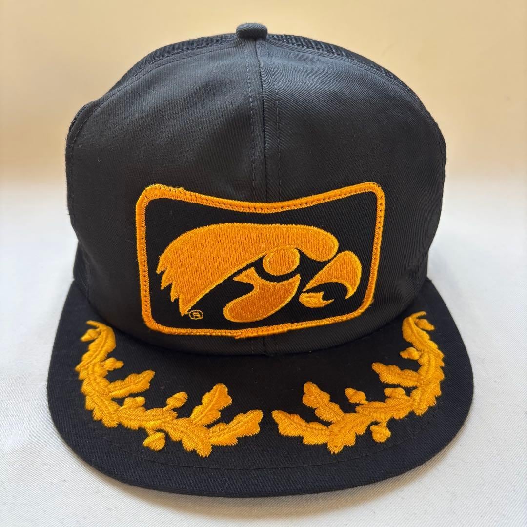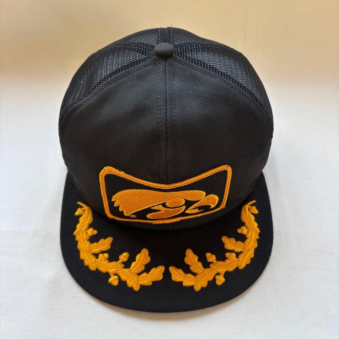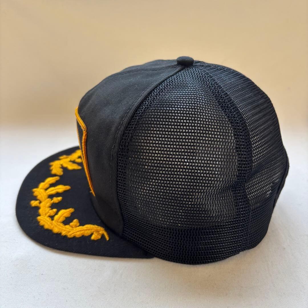 企業、またはスポーツチームの販促品と見えると見えるこちらは、ワッペンとゴールドリーフでキャップ全体が黒と金色で統一された雰囲気ある一点。