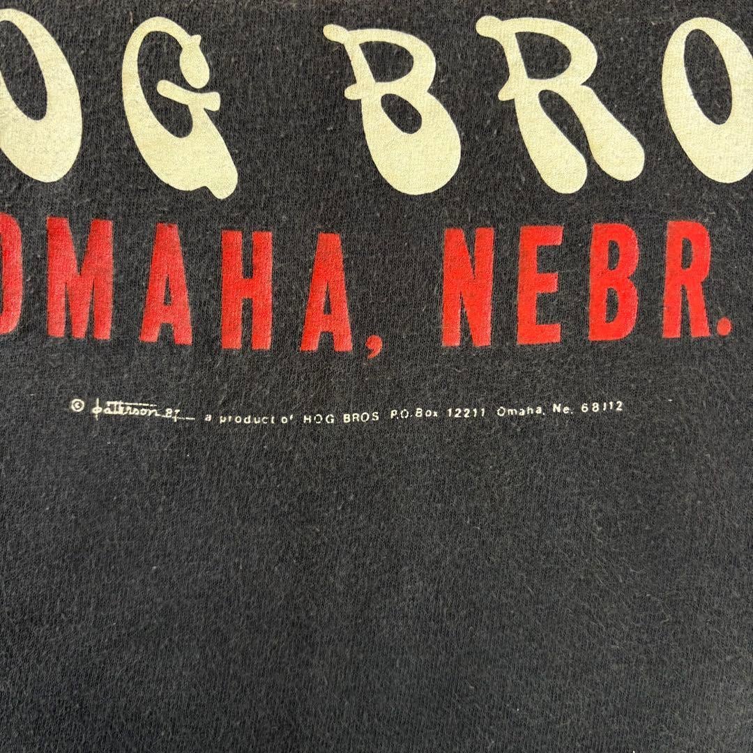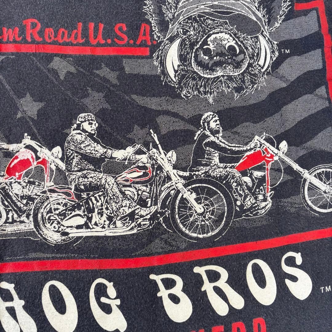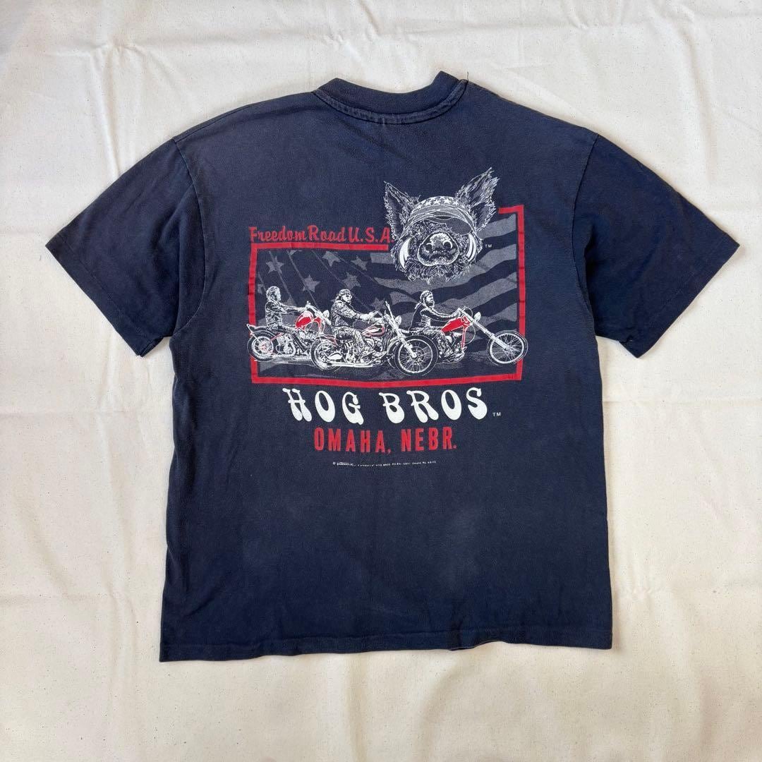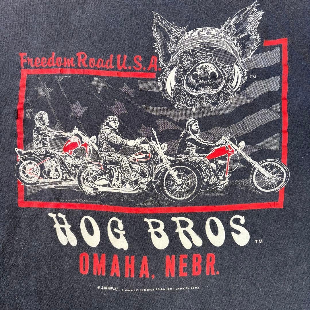 80s HOG BROS Tシャツ L バイカー ハーレー フェード ビンテージ