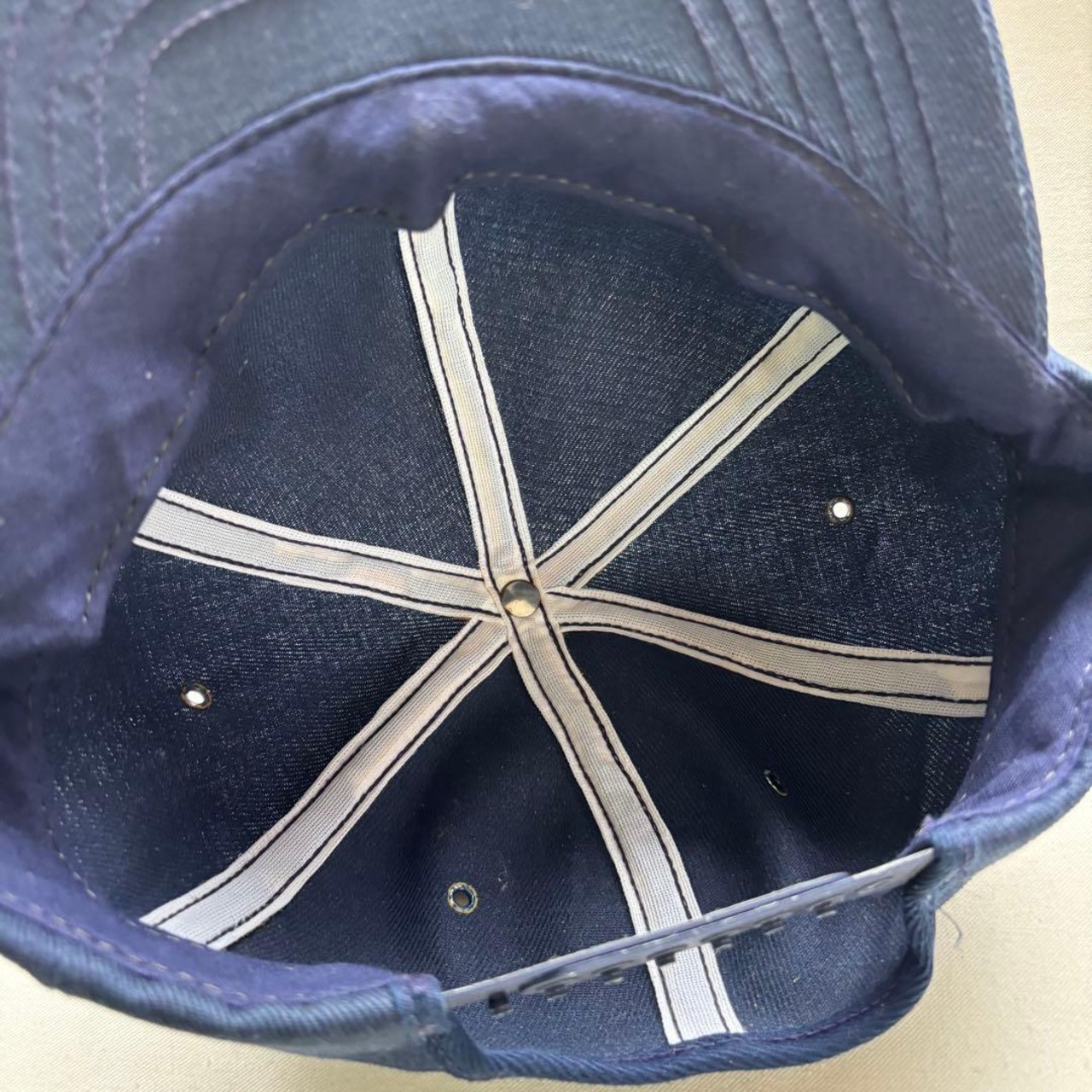 取り除いたフォームの残留分、バイザー芯材の折癖、頭頂部付近のシミが見えますが、その他は比較的に綺麗なコンディションです。