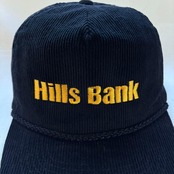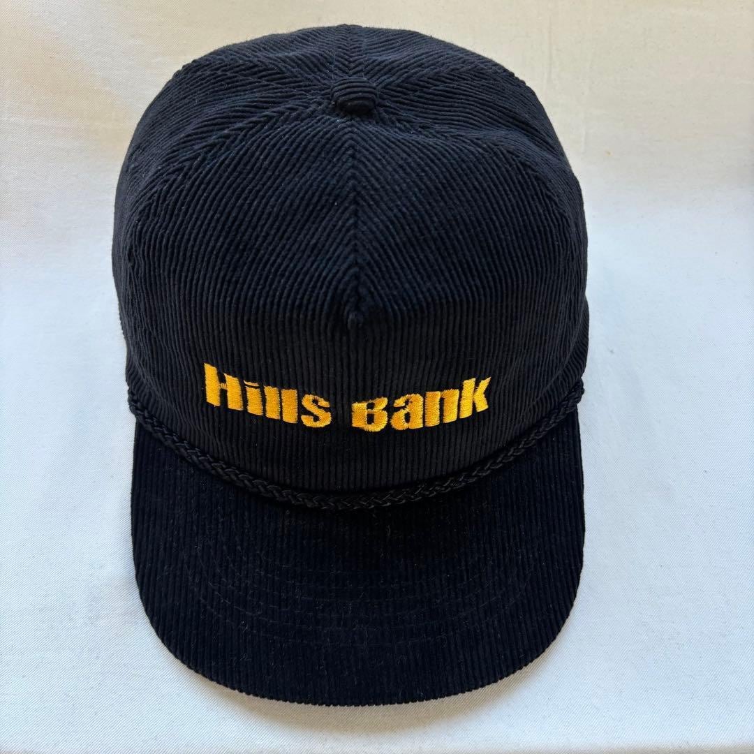 銀行の販促グッズと見えるこちらは、黒色のコーデュロイボディに映える黄色の刺繍がアイキャッチ。