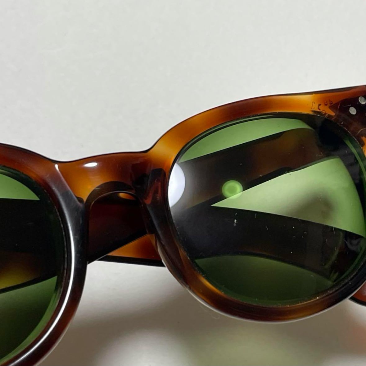 年代なりのスレ、またレンズ厚に違いによるフレームの湾曲は見えますが、年代を考慮すると艶も強く残るかなりの美品かと思います。